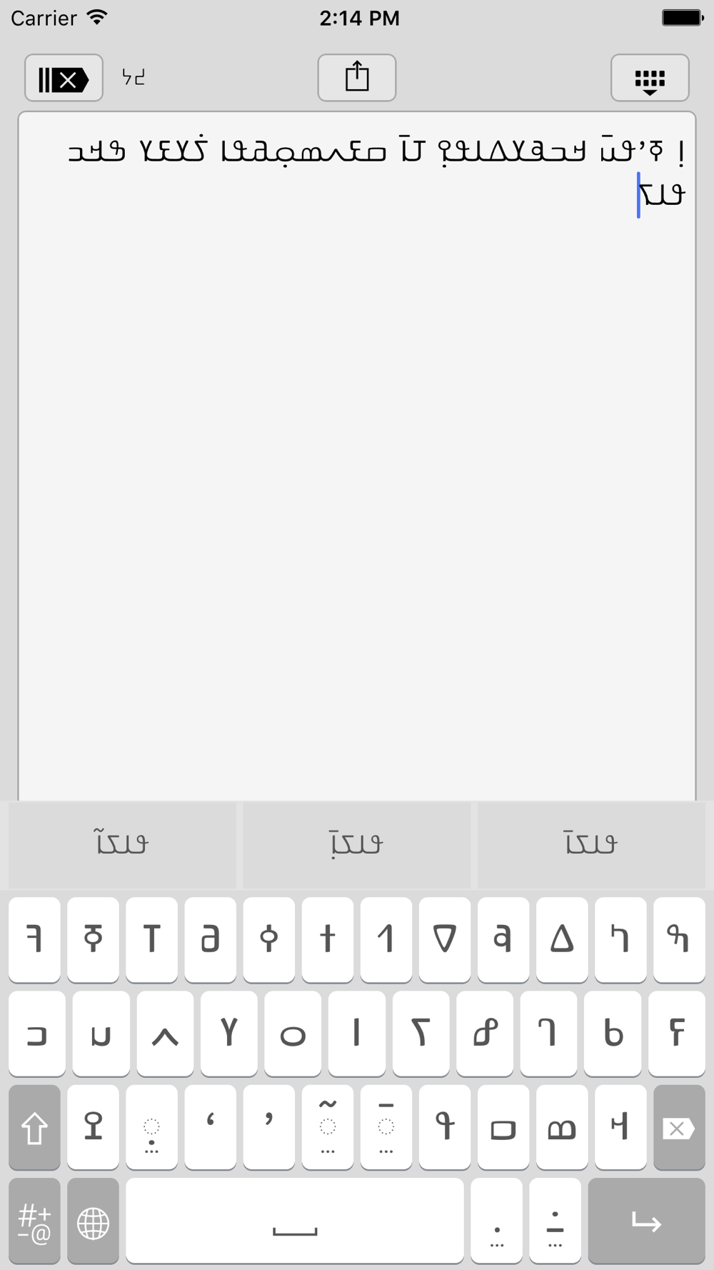 N’ko Sebedenwala installs a high-quality keyboard for the N’ko writing system on your iPhone and iPad. The keyboard can be used anywhere on your device, while the N’ko Sebedenwala app itself is a useful combined utility for creating emails, messages and tweets.