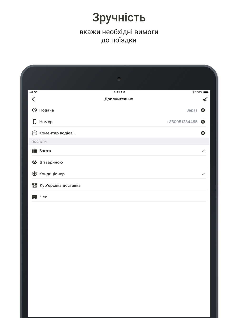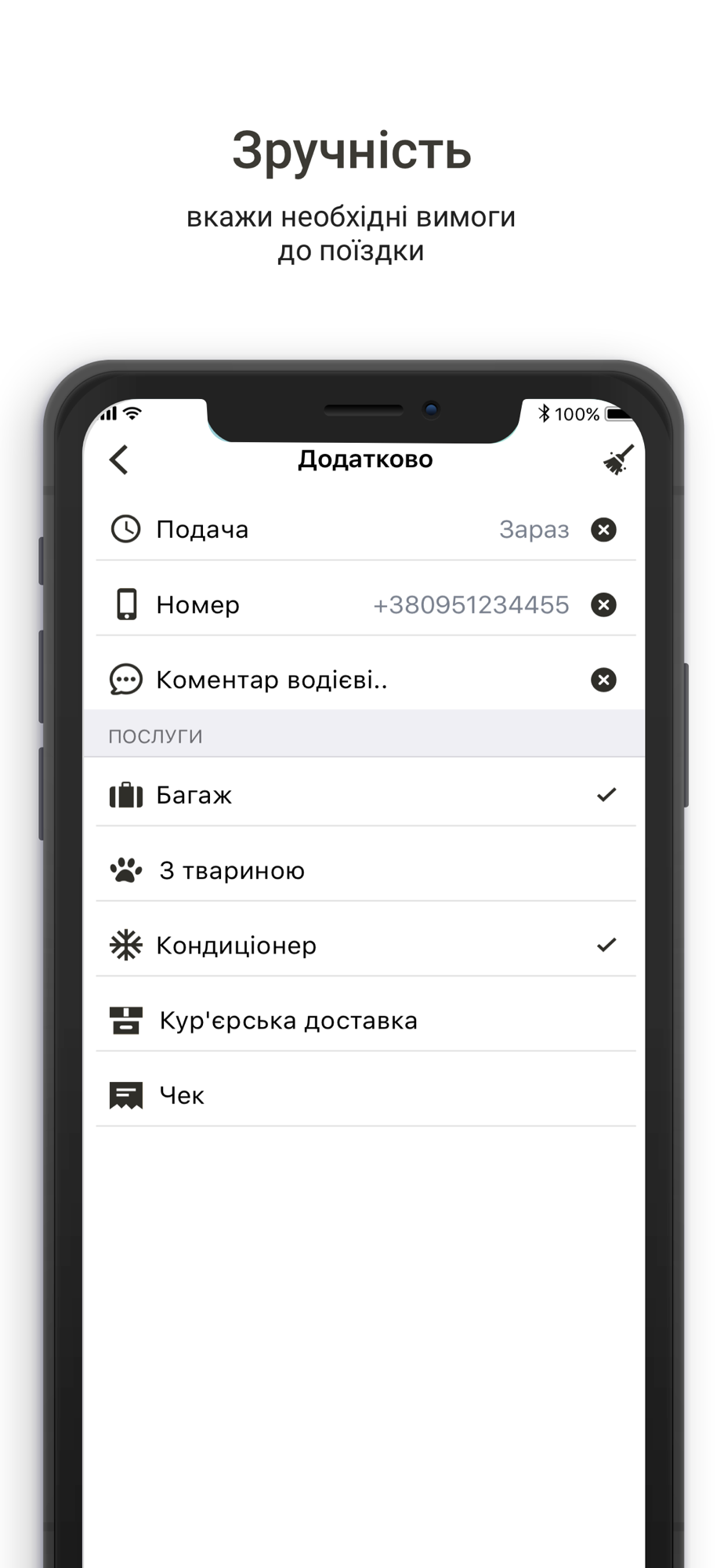 - швидкий виклик авто, згідно з Вашими вимогами;