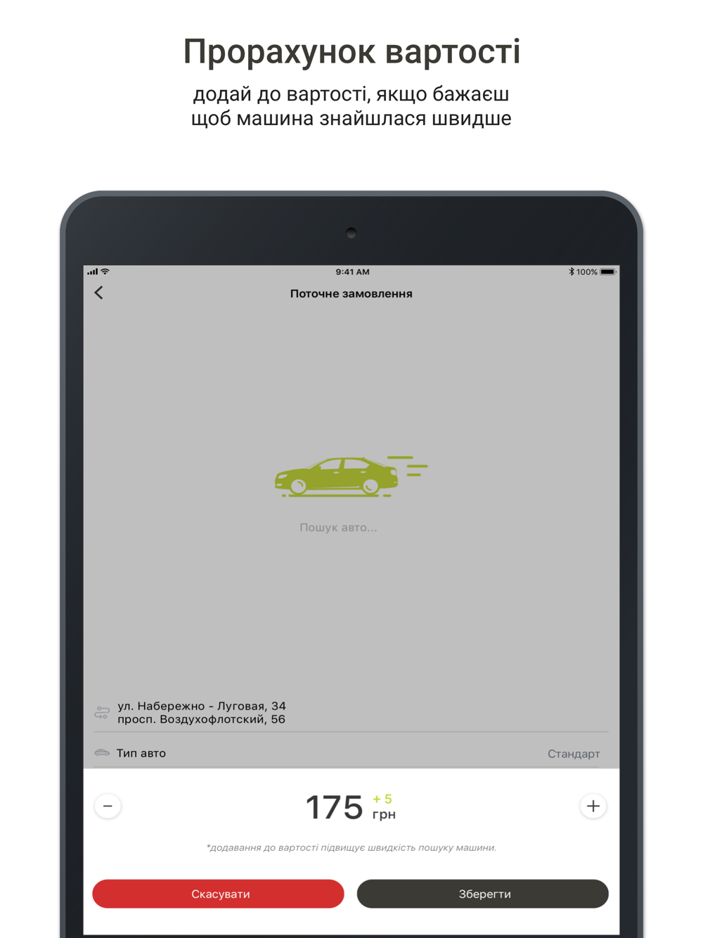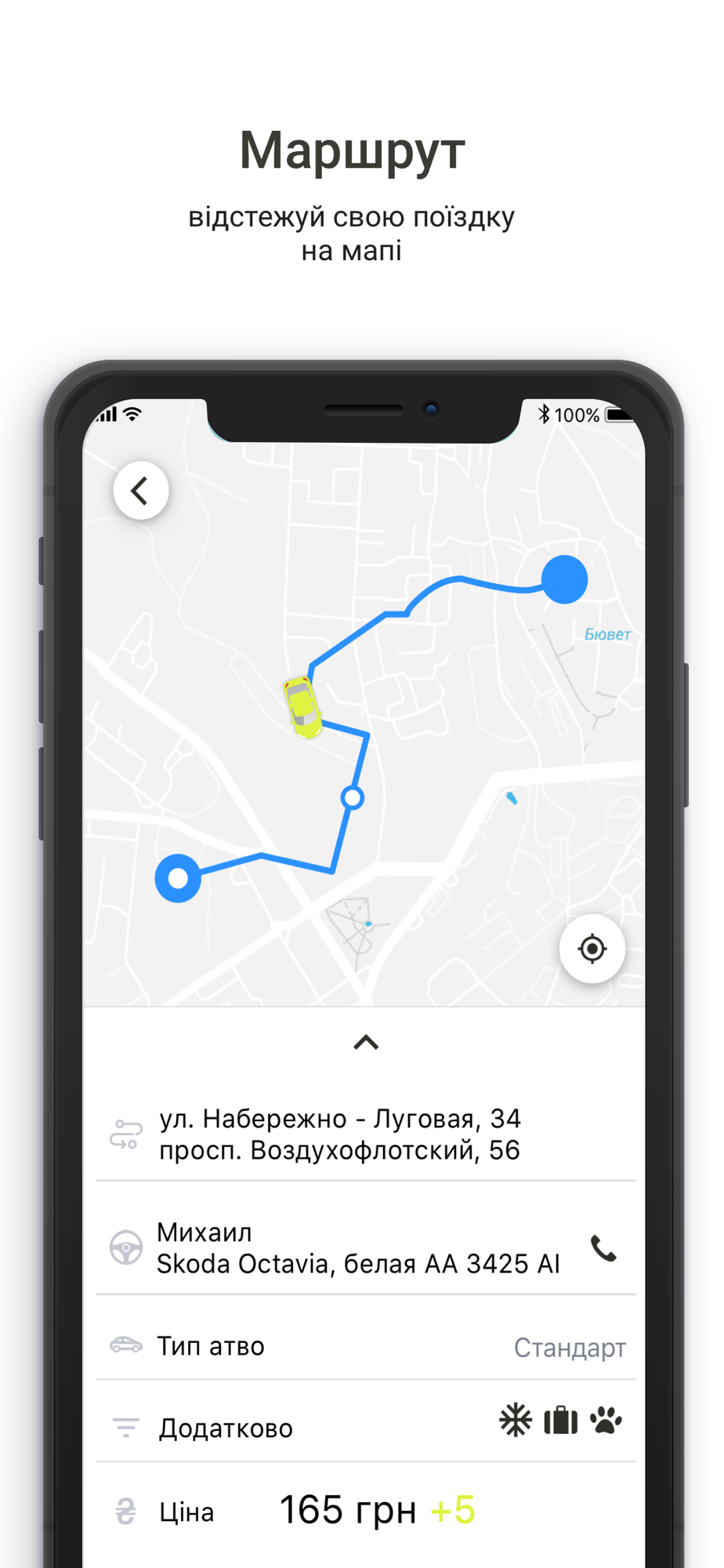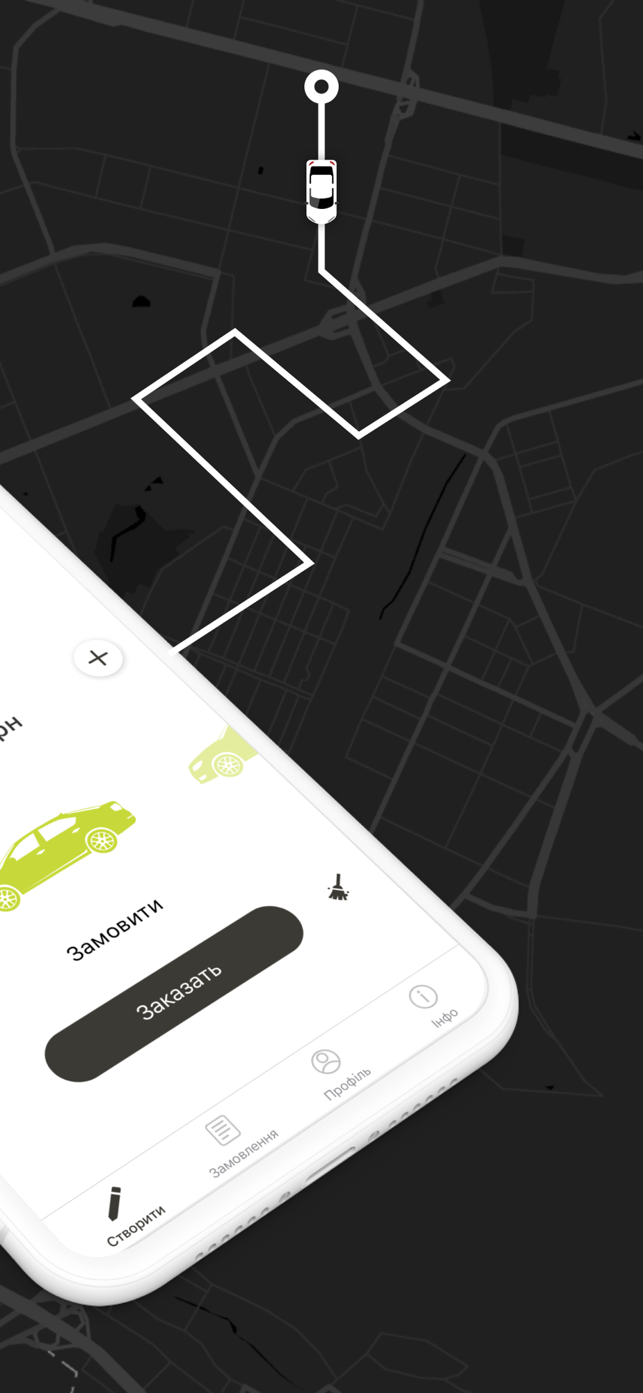 Замовляйте таксі швидко і легко, всього в пару кліків. Швидка подача і ніяких дзвінків. Забудьте про дзвінки оператору, викликати таксі стає простіше.