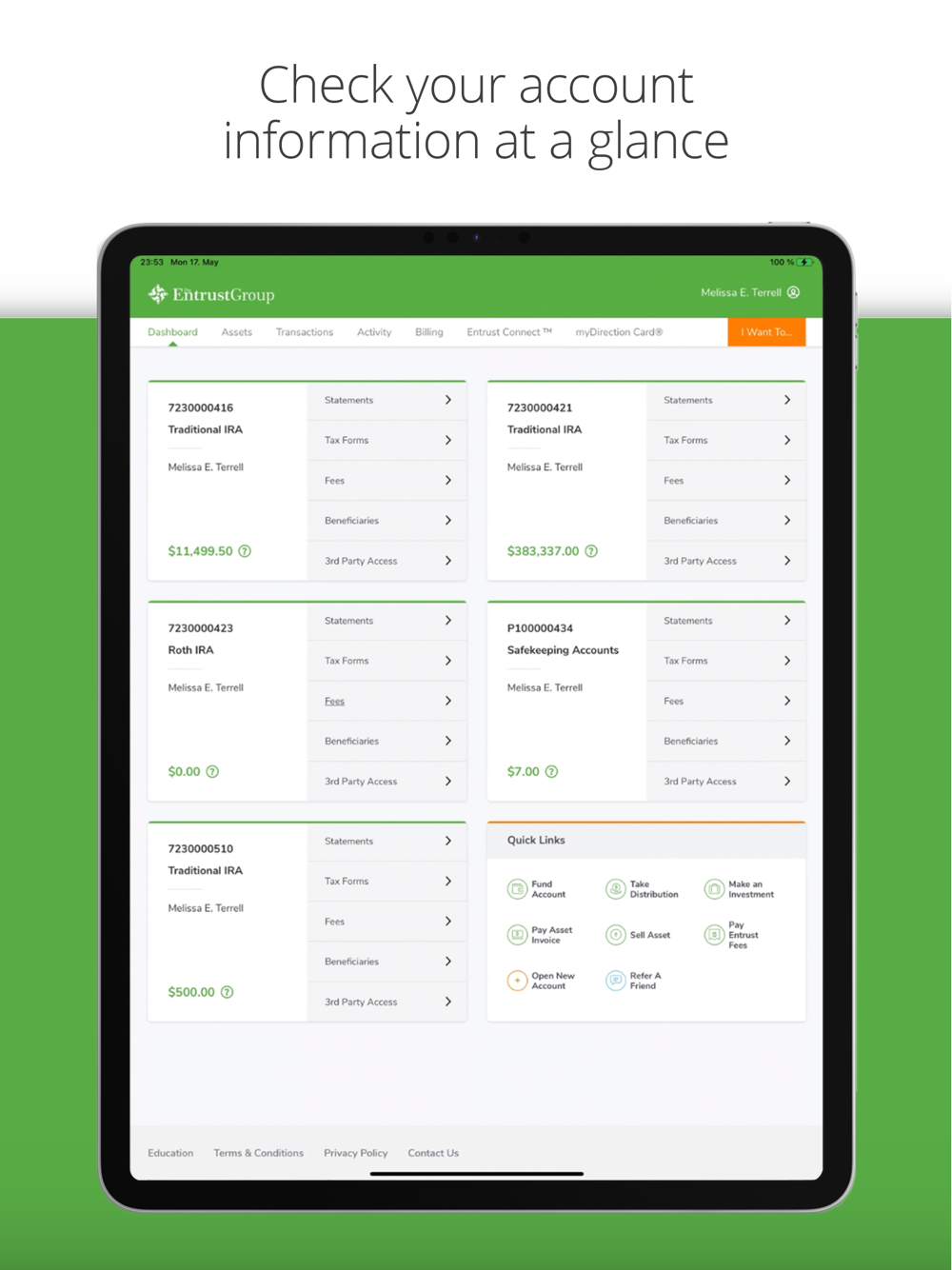 With our app, you can manage your SDIRA on the go. The Entrust app is currently designed for existing account holders.
