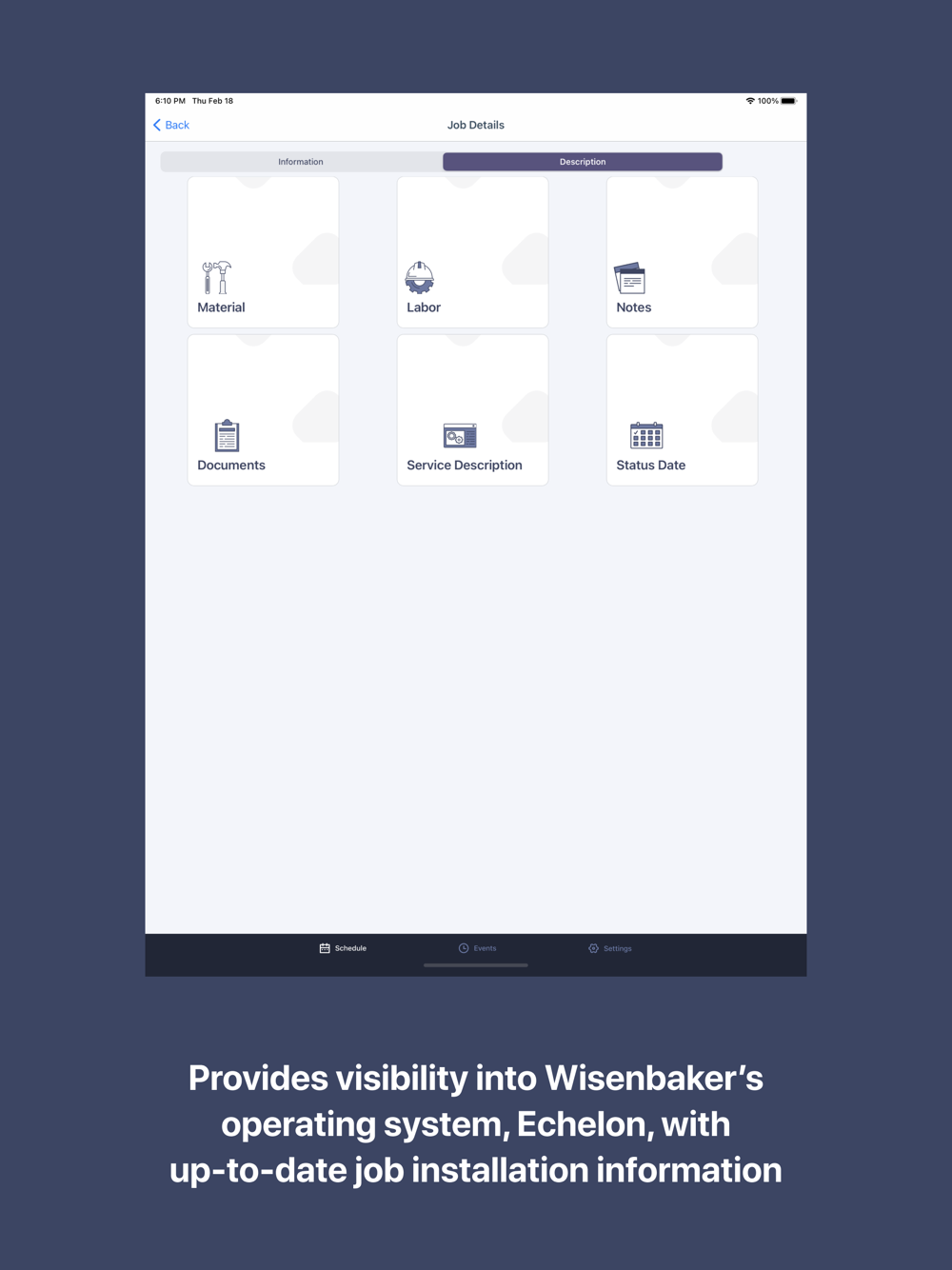 Provides visibility into Wisenbaker’s operating system, Echelon, with up-to-date job installation information.