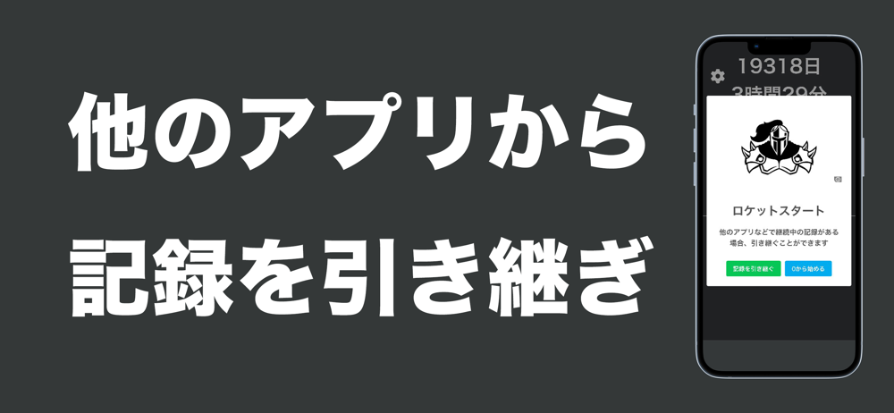 →目標に対する到達度を%で確認でき、目標はいつでも変更することができます。また、他アプリから日数を引き継ぐことができる「ロケットスタート」モードがあるのでアプリの乗り換えも気軽にできます。