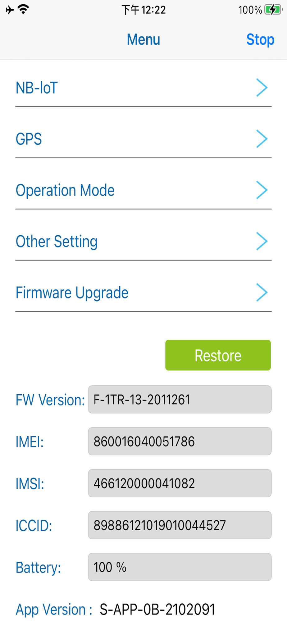 - Operation Mode: Periodic or Motion mode/ Report interval