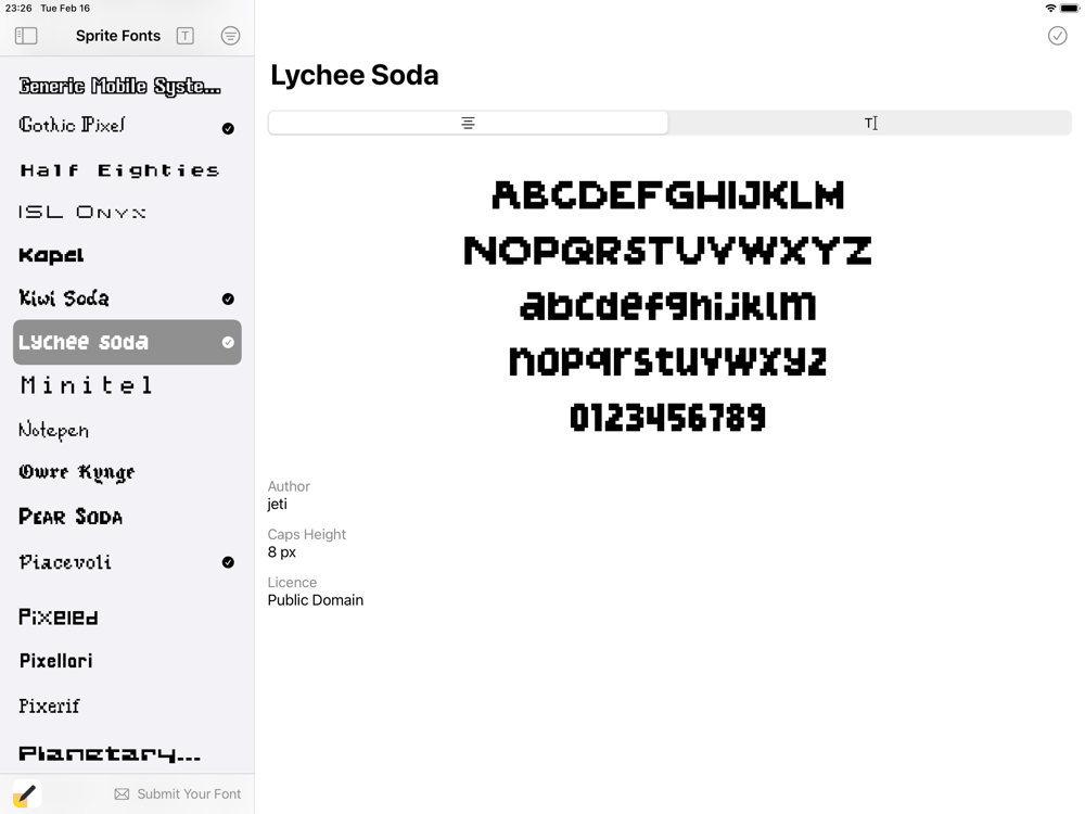 Sprite Fonts allows you to install a variety of pixel perfect fonts for use in other apps.
