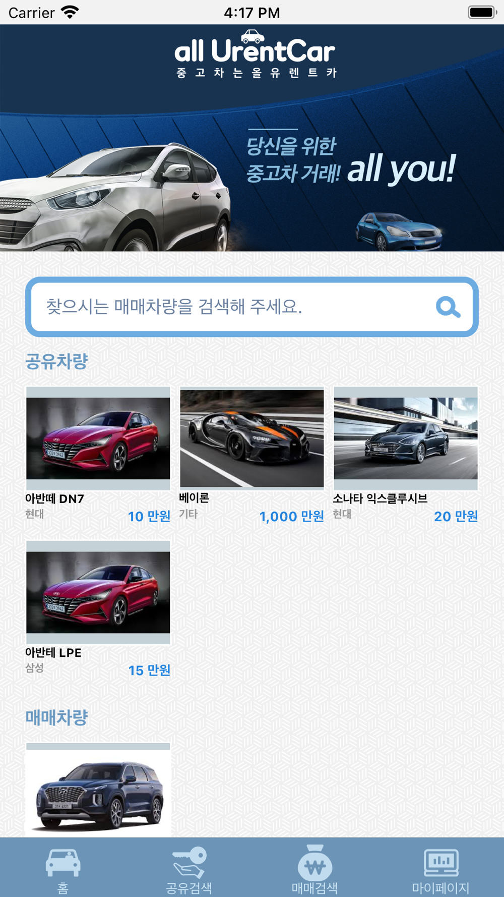 자동차를 렌트하거나 렌트카 업체끼리의 대여 및 매매 앱