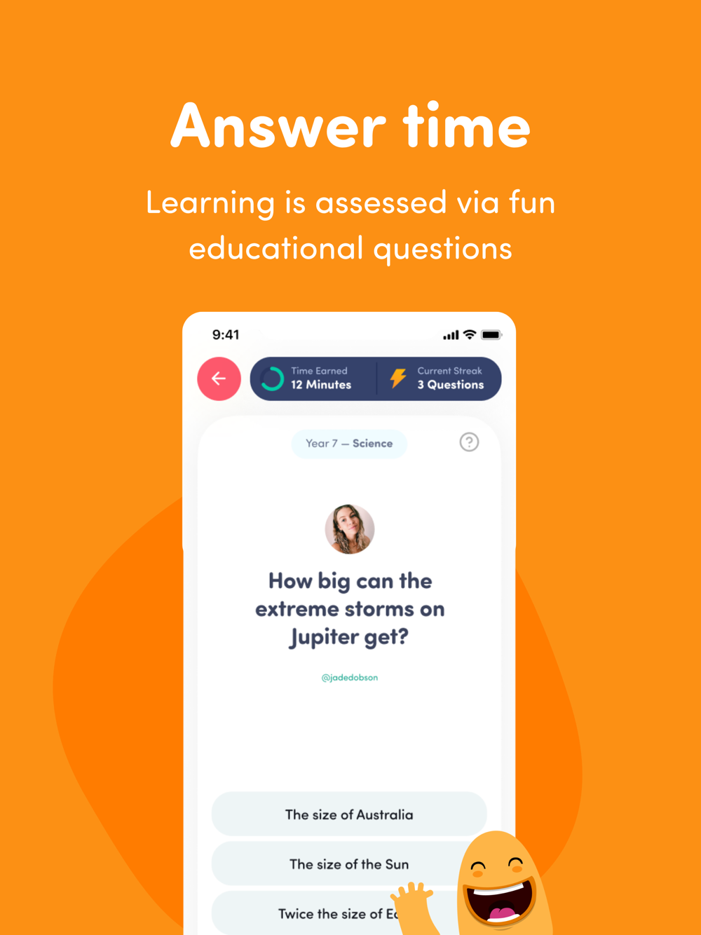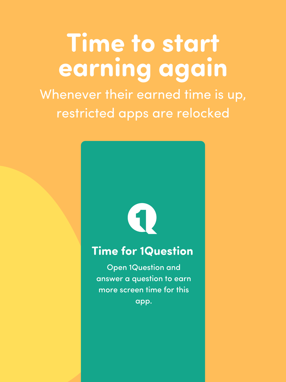 With 1Question, kids learn to earn screen time minutes to use in their favourite apps.