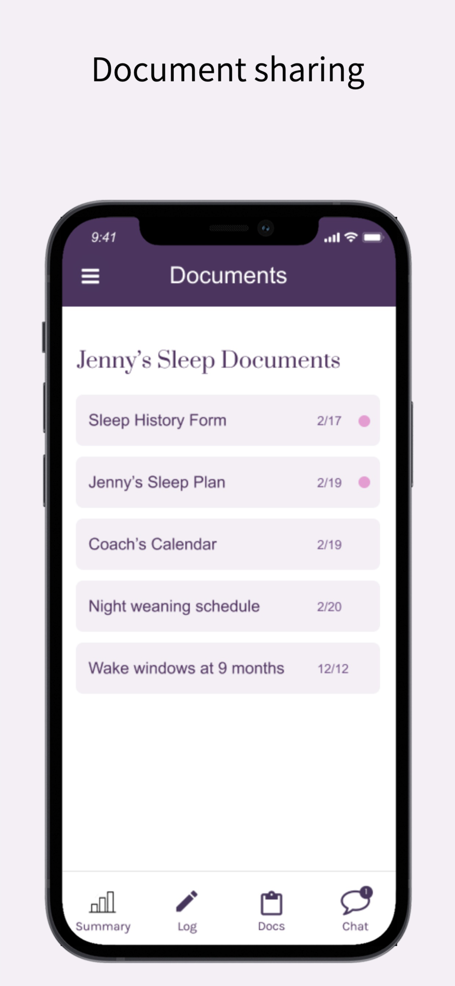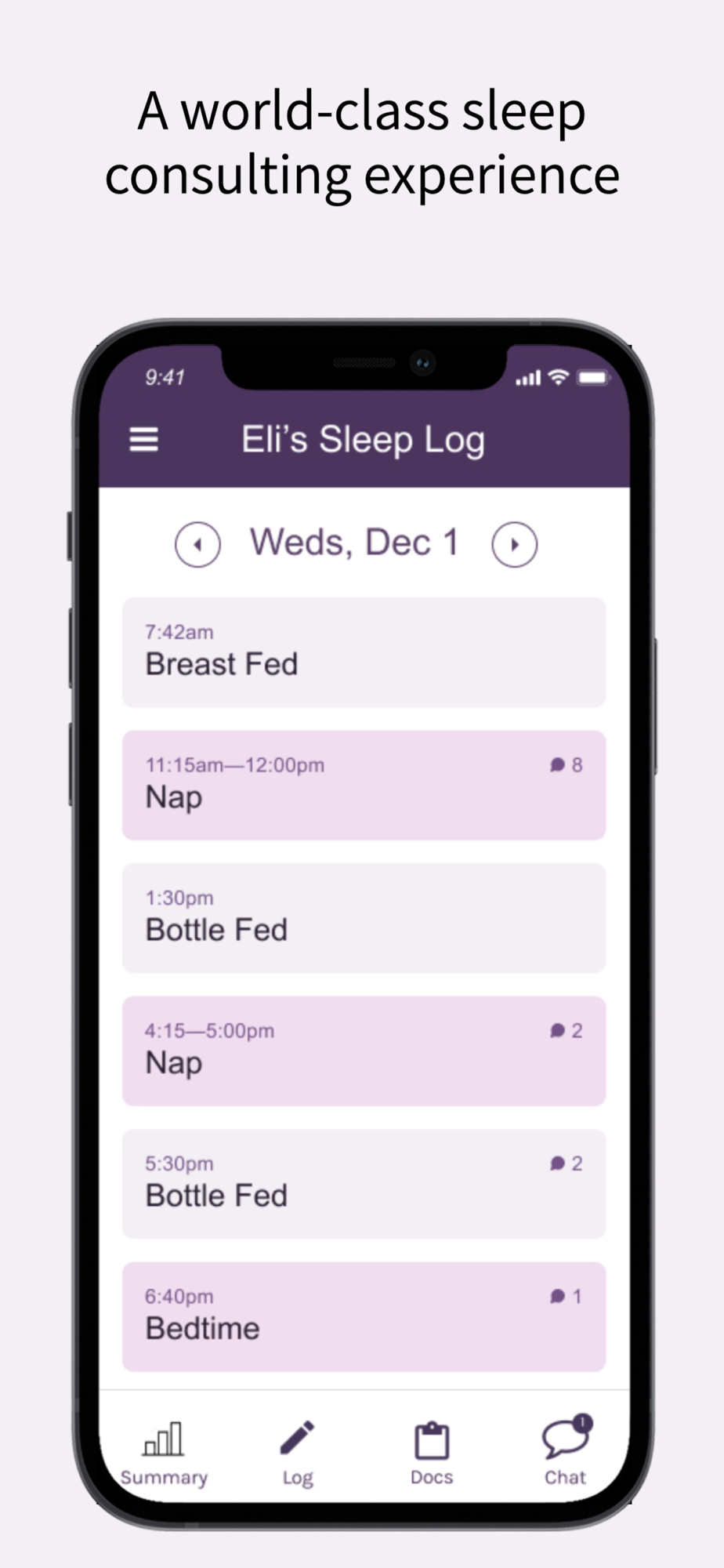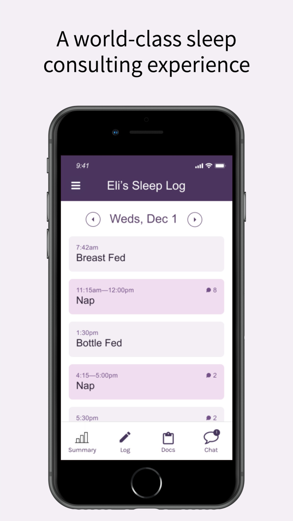 The Rested.Family app helps you log your child's sleep and communicate with your Rested coach.
