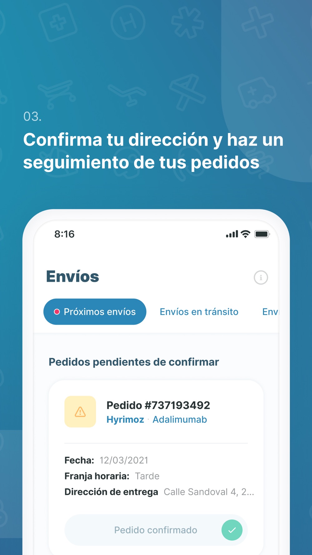 A través de la app ”Sequo HC” los pacientes podrán recibir la medicación en su domicilio, y a su vez, podrán tener un calendario interactivo que les ayude a afianzar su adherencia al tratamiento así como tener toda la información que necesitan sobre sus medicamentos y sobre cómo administrarlos.