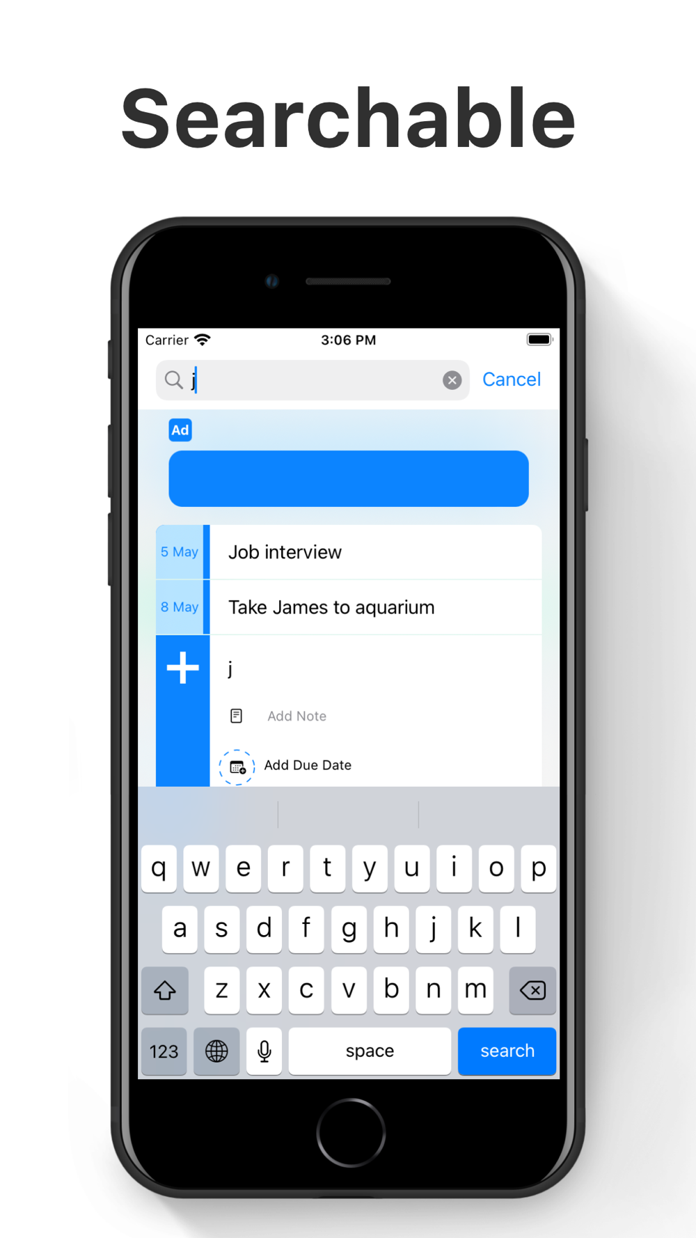 The tasks are clearly readable and sorted by the time you want it done, so you don't have to dig into a pile of mess that is a list of things you don't care about at the moment. The list is separated into timeframes, so you know how free you are today, tomorrow, or in the future.