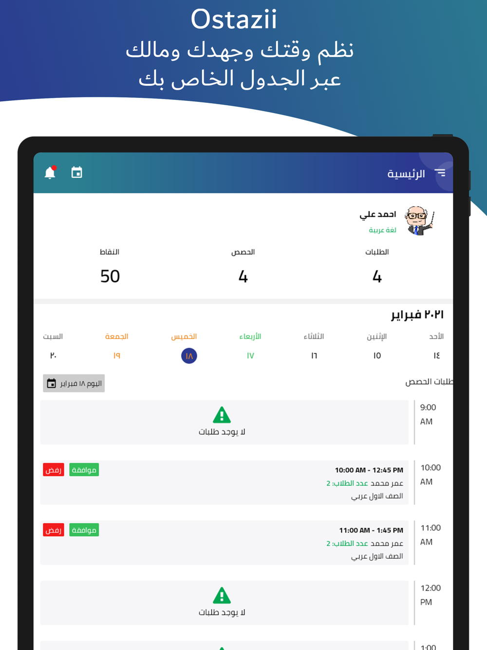 Ostazii Teacher is an app that helps the teacher handle his lessons schedule and accepting students request for lessons, and easing the process of booking a lesson