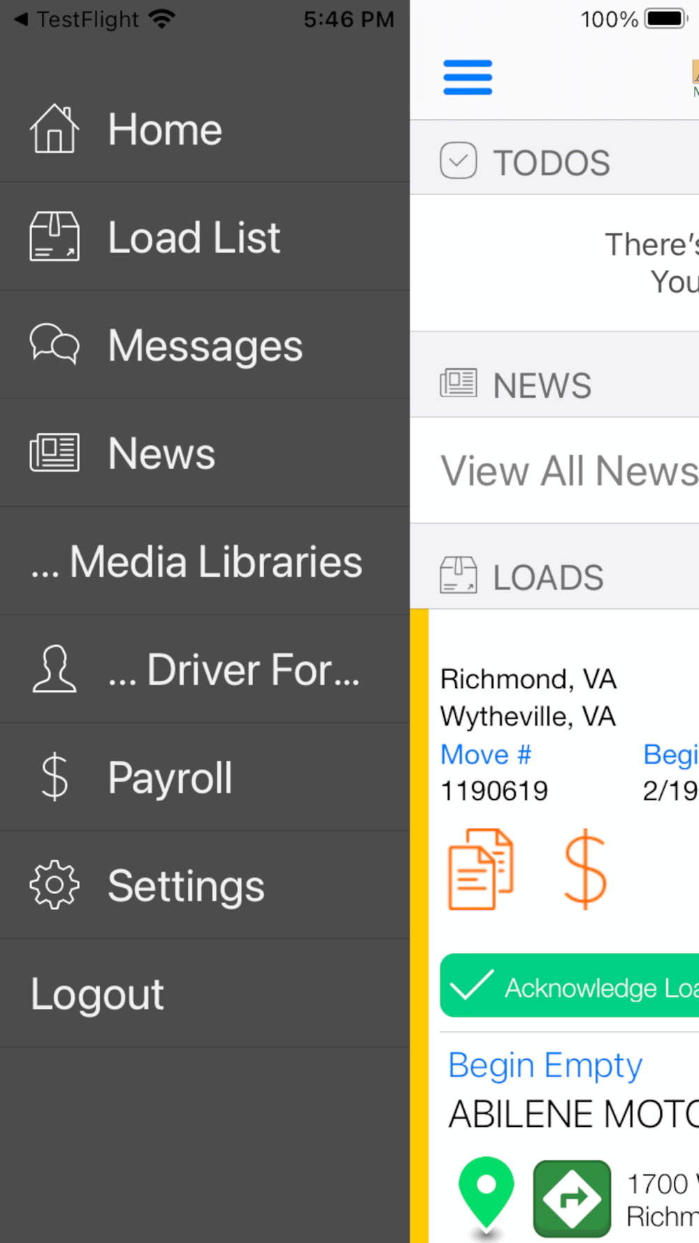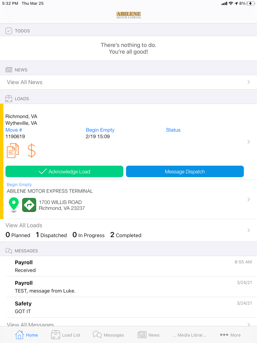 Abilene Motor Express mobile application was designed with our driving associates in mind. You can easily keep track of your current and past loads while on the go.