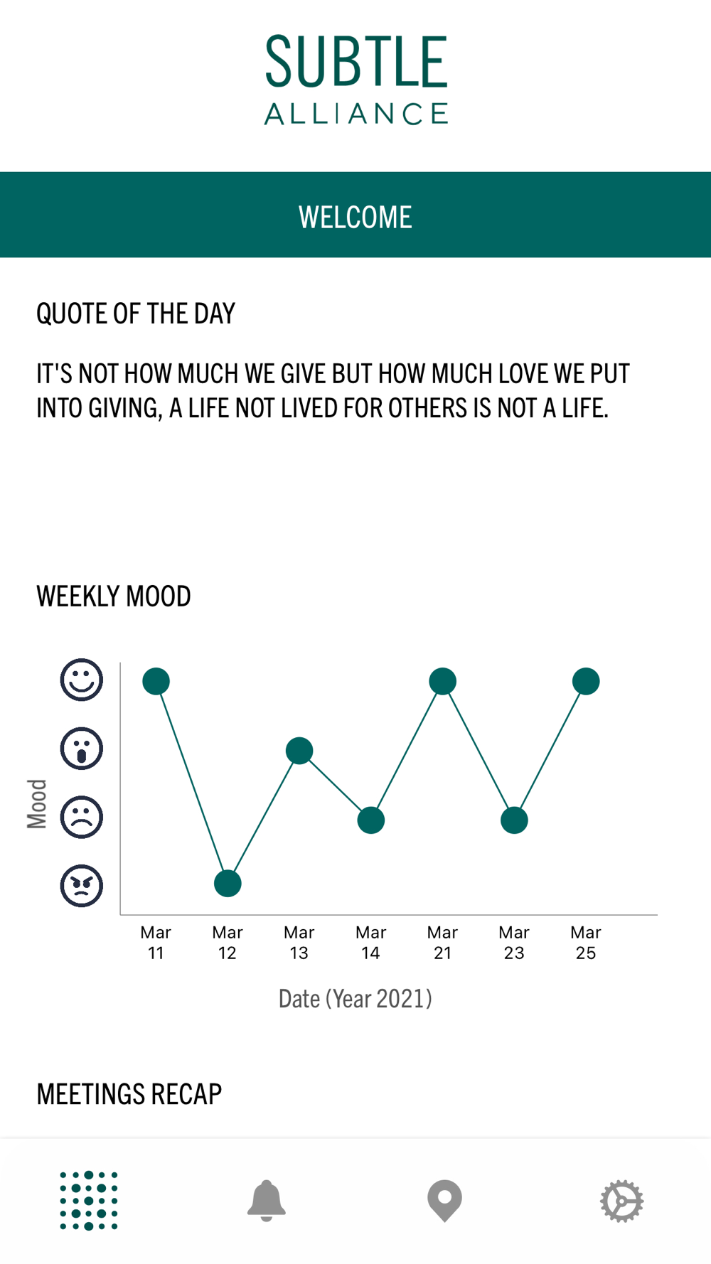 Community is an important factor in the maintenance of sobriety. Subtle Alliance keeps you engaged with a network of people all motivated and brought together by a common goal: abstinence. Find local or online AA and NA meetings to join, then learn and share insights and tactics on how to overcome addiction. Hold yourself accountable day to day and week to week using our built-in meeting tracker.