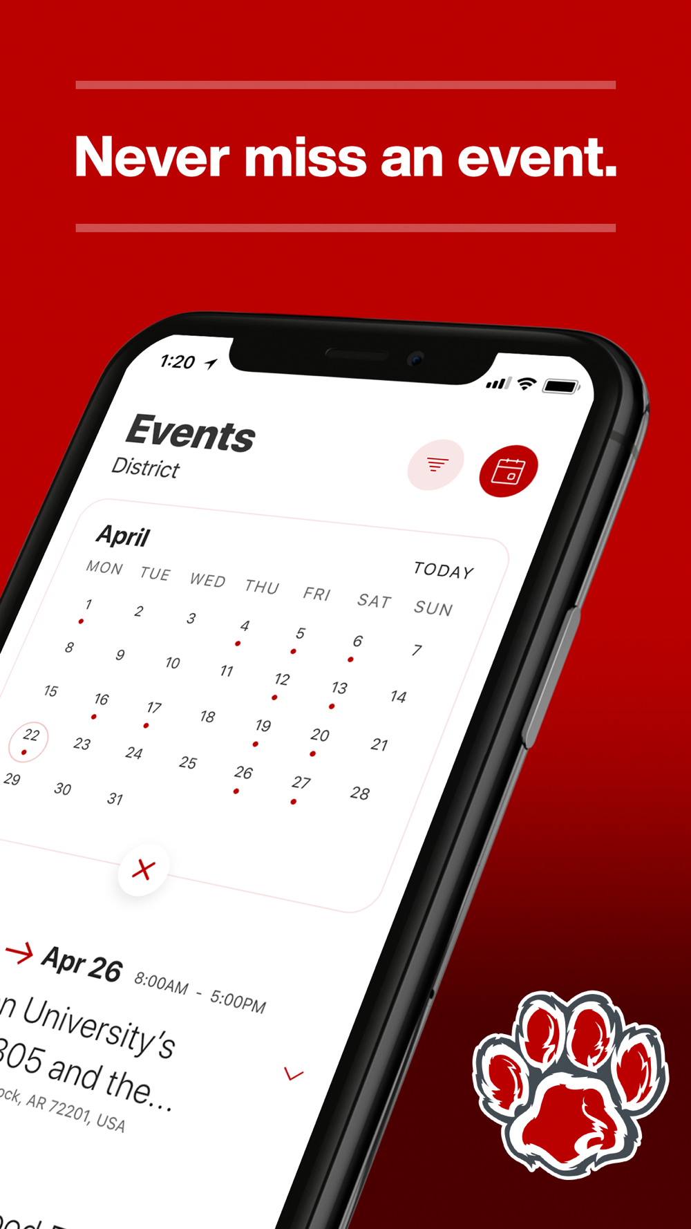 NEVER MISS AN EVENT