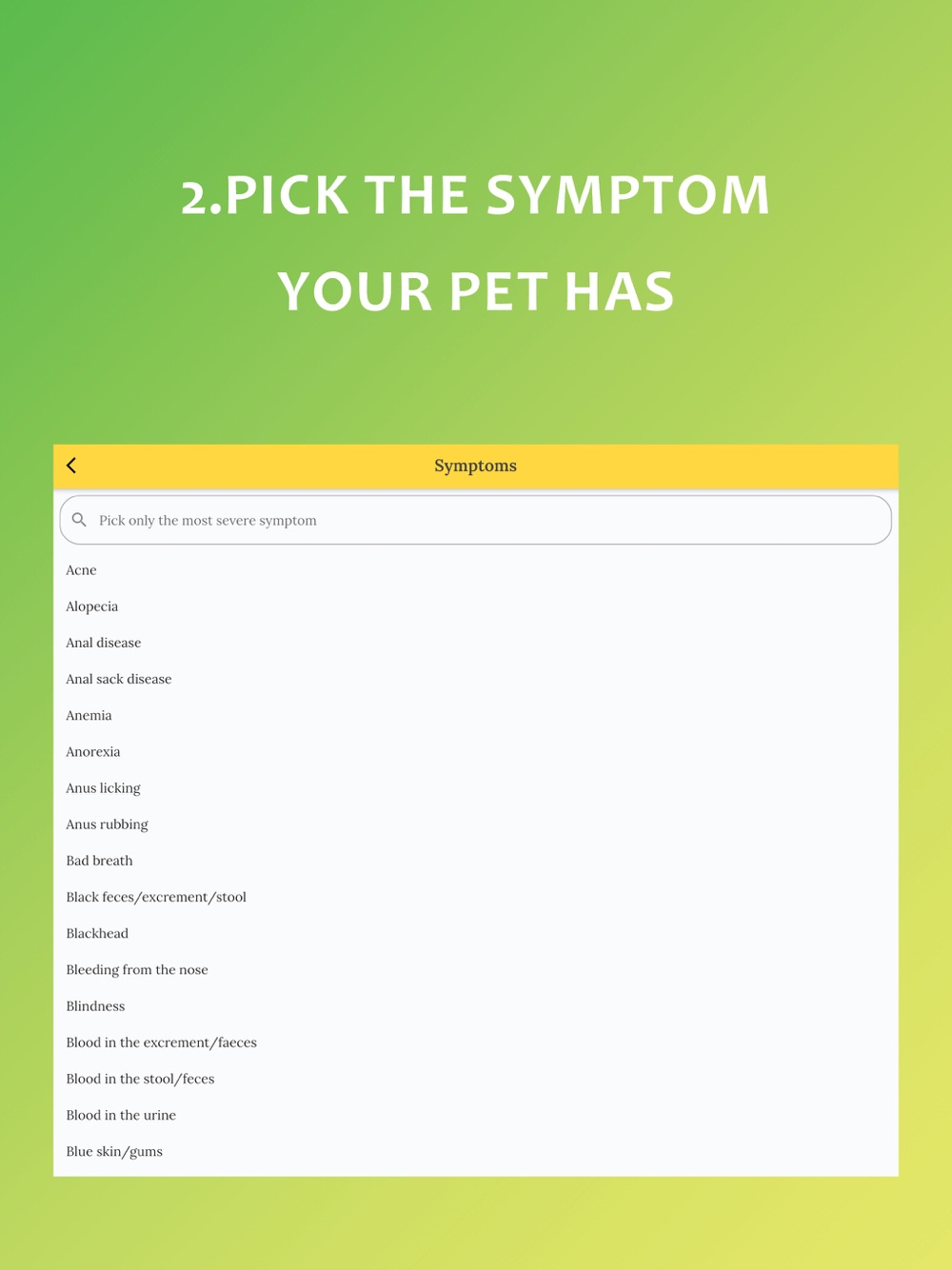 2. Choose the symptom that is the most prominent and most concerning for you and your dog or cat.
