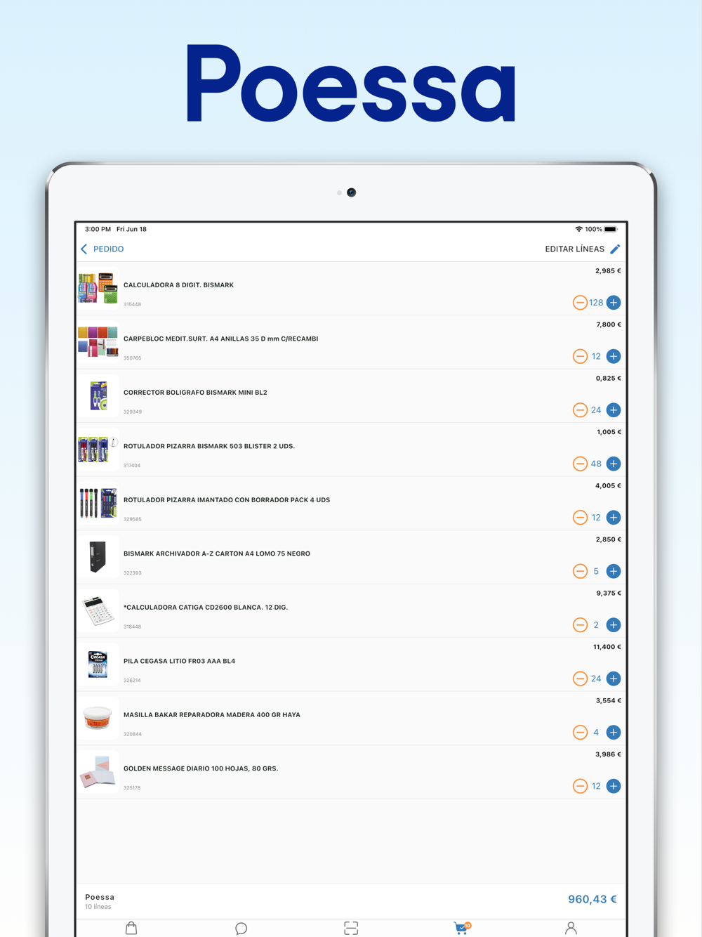 Poessa es un referente en el mercado de la fabricación y comercialización de material de oficina, papelería-escolar, regalo y hogar que cuenta con más de 30 años de experiencia. Gracias a la selección de los productos y la fidelidad de nuestros clientes hemos podido elaborar un catálogo muy importante dentro del sector de la papelería y el regalo.