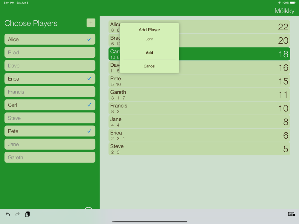 Keep score when playing Mölkky, on your iPhone or iPad.