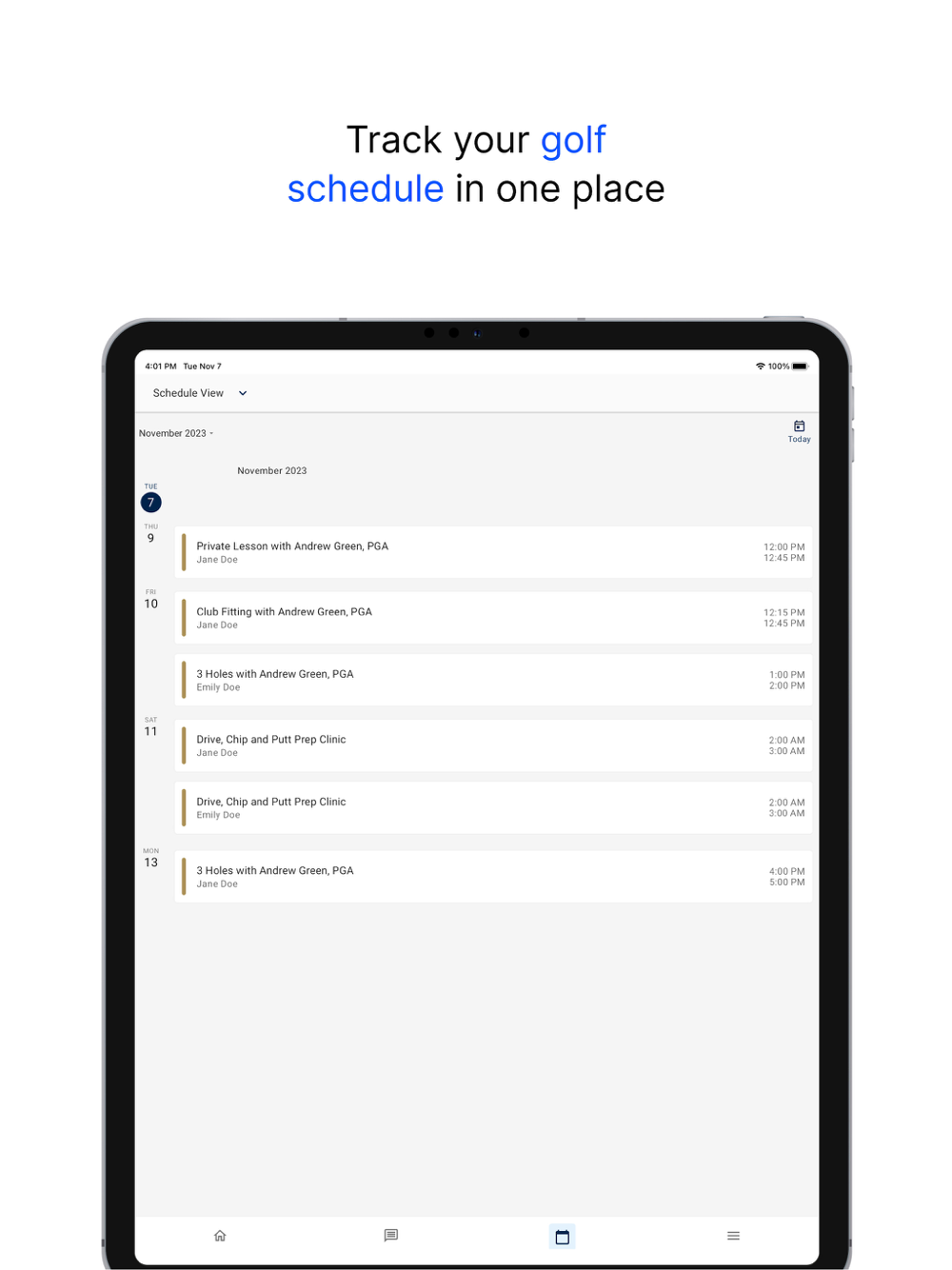 We’ve now brought online booking into the app experience. No longer do you need to call the golf shop or try to get a hold of your coach to schedule a lesson. With online booking you can see all of your coach’s offerings on one screen, making it a quick and easy process.