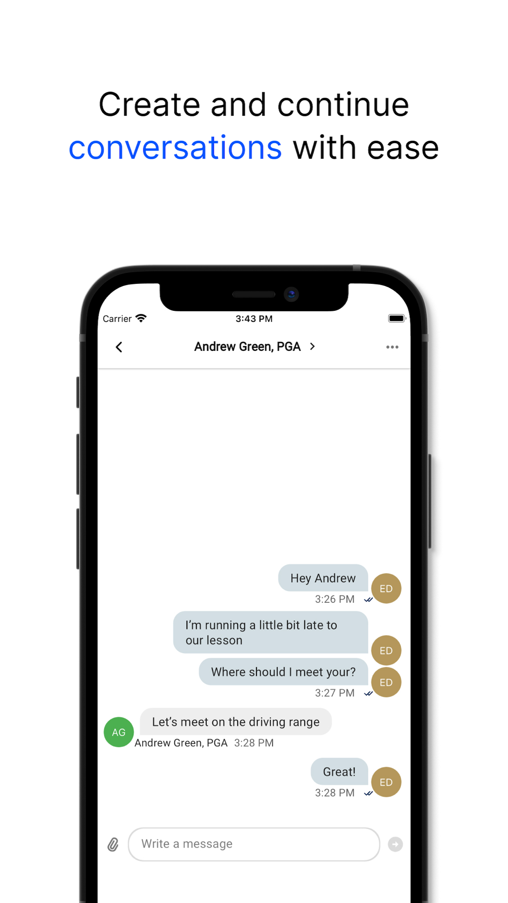 It’s now easier than ever to stay in touch with your PGA Coach. Think of Messaging as the new place for all of the coach-to-student communications. Whether that’s to let your coach know you’re running late to your lesson, to updating them on your most recent round of golf.