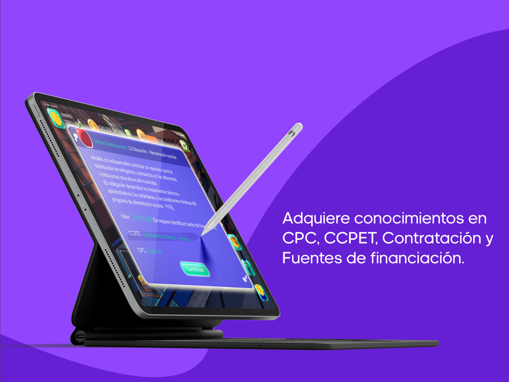 Esta versión permite ser una guía que otorga insumos teóricos y técnicos en temas de competencias territoriales en un ambiente 3D e inteligencia artificial donde el usuario tiene la facultad de desarrollar las principales acciones que se ejecutan tales como normatividad aplicación del Catálogo de Clasificación Presupuestal para Entidades Territoriales y sus Descentralizadas CCPET, la Clasificación Central de Productos del DANE, fuentes de financiación, tipología y modalidad de contratación, Atendiendo al principio de anualidad presupuestal.