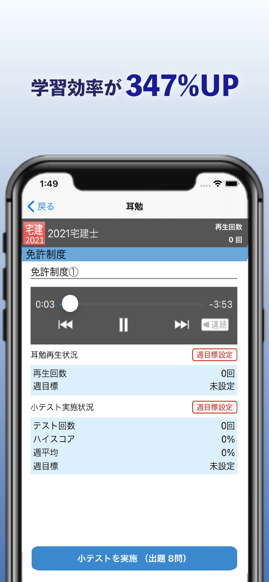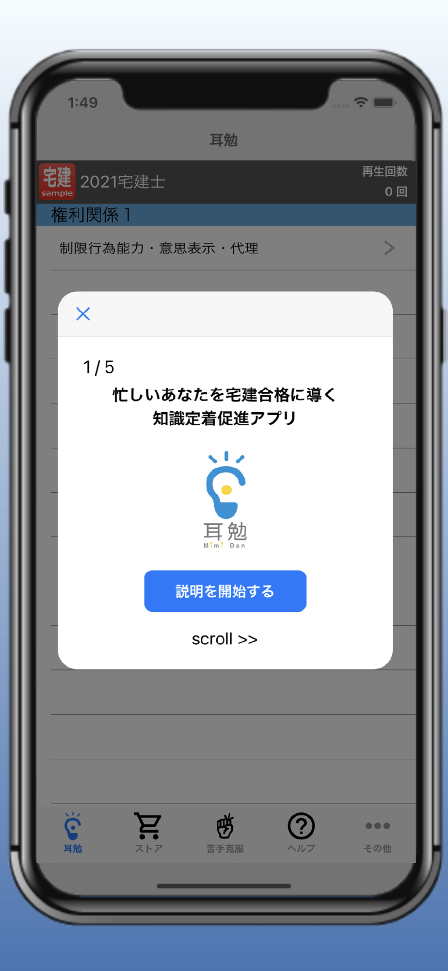 宅建合格に重要で必要な「宅建業法」が収録されています。社会人の方にとってこの暗記は時間のない中でやらなくてはなりません。たいがいの人がテキストを理解するのが精一杯で、覚え込むまでには時間が足りないのが現状です。そこで、三重音声を聴くだけで、集中力を拡張させ、短い期間に暗記ができるように『耳勉』を開発しました。特に再受験の方には強い味方となります。また初受験の方には、学習をサポートする頼もしいツールとなります。