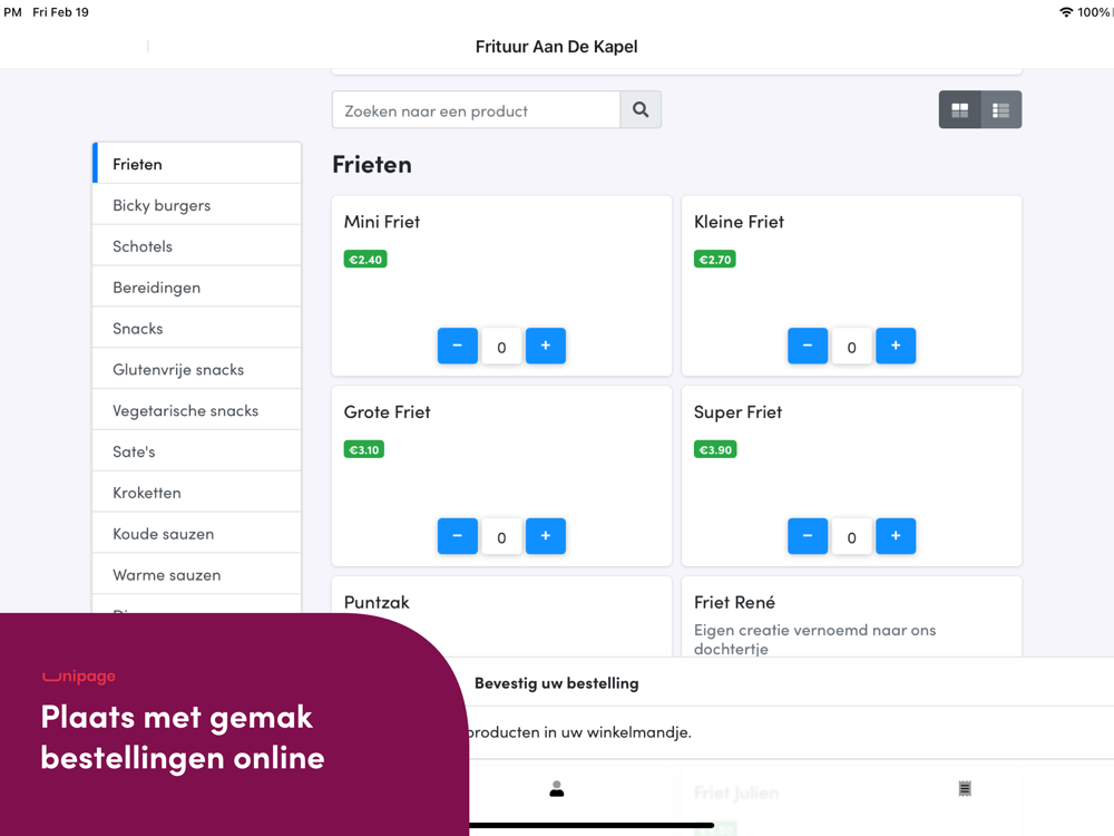 Zin in lekkere frietjes? Dan ben je bij Frituur Aan De Kapel aan het juiste adres. Kom langs of bestel online! Vermijd wachtrijen en bestel je frietjes vanuit je zetel!