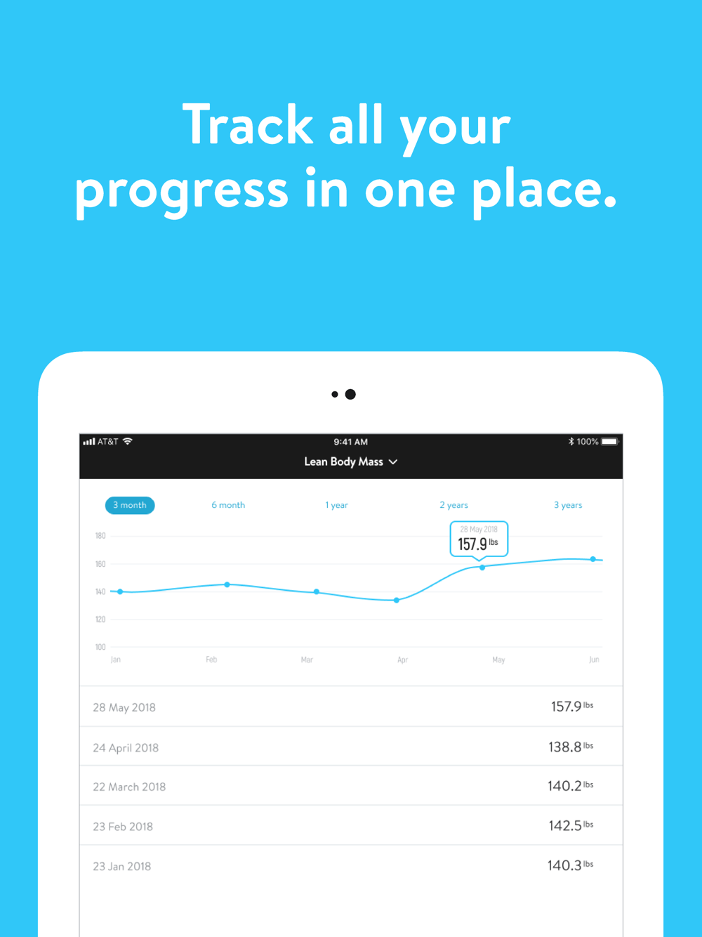 - Connect to wearable devices like Apple Watch (synced to Health app), Fitbit and Withings to sync body stats instantly