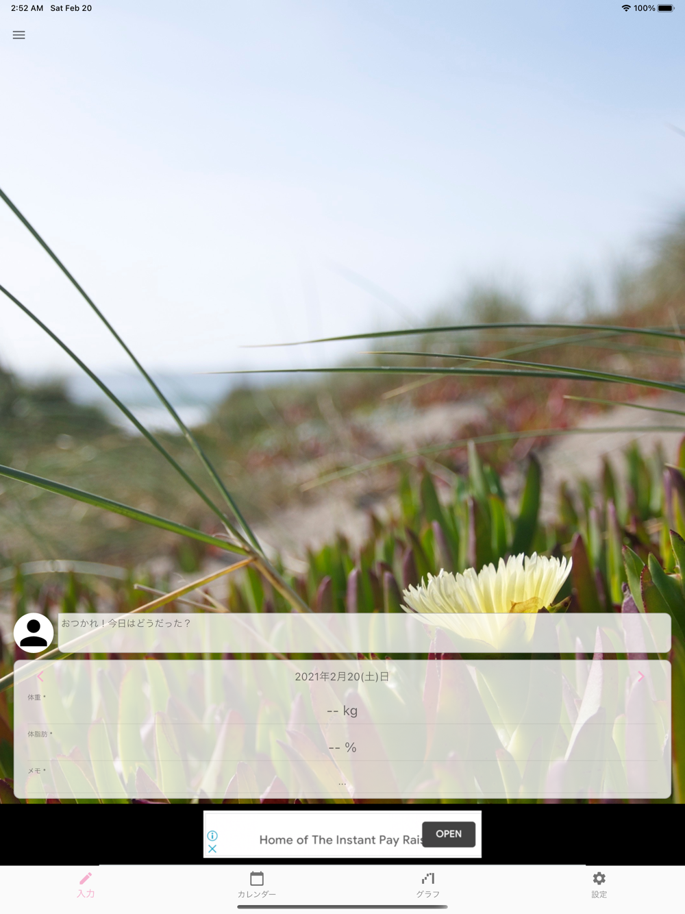 体重、体脂肪、メモの3つのシンプルな入力フォームになっているので簡単に入力できます!メモ欄にはその日のトレーニング、食事の内容、ウェスト、バスト、ヒップ、太もも、二の腕の太さ、はたまた日記、推しへの思いなど自由に入力しましょう!