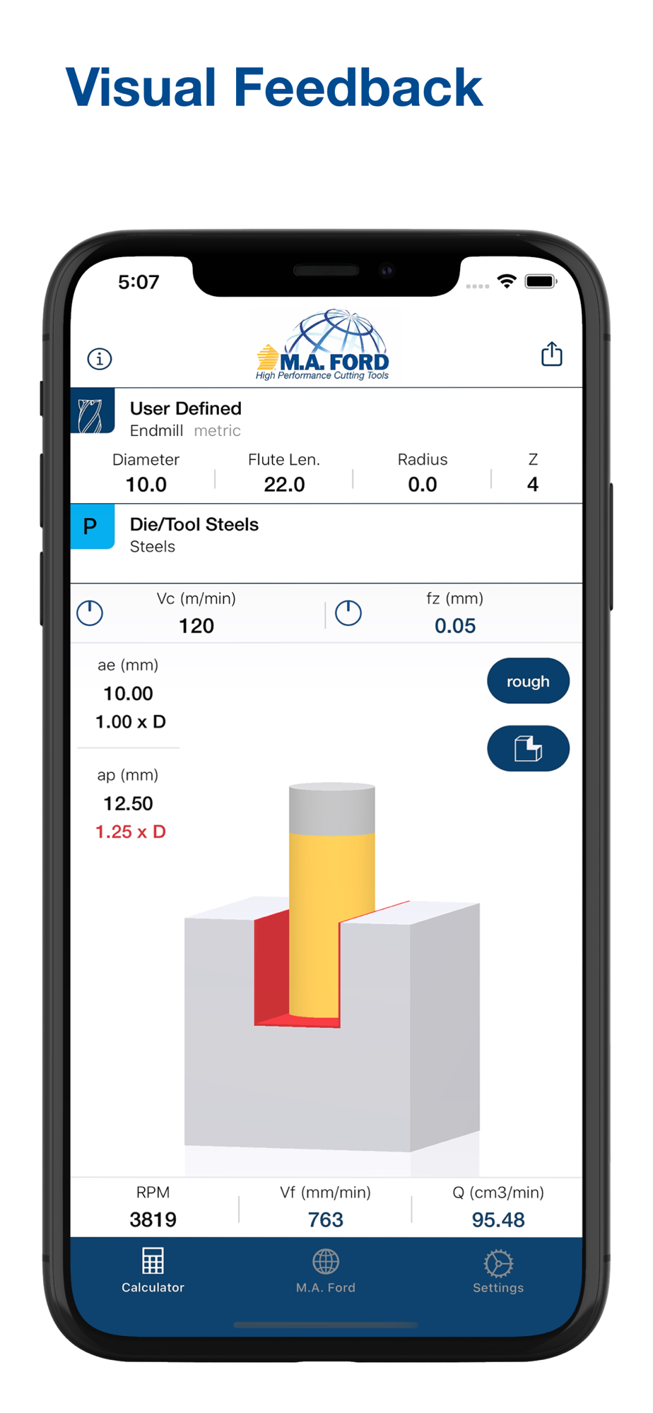 Advanced speeds and feeds calculator optimised for High Speed Machining (HSM) strategies