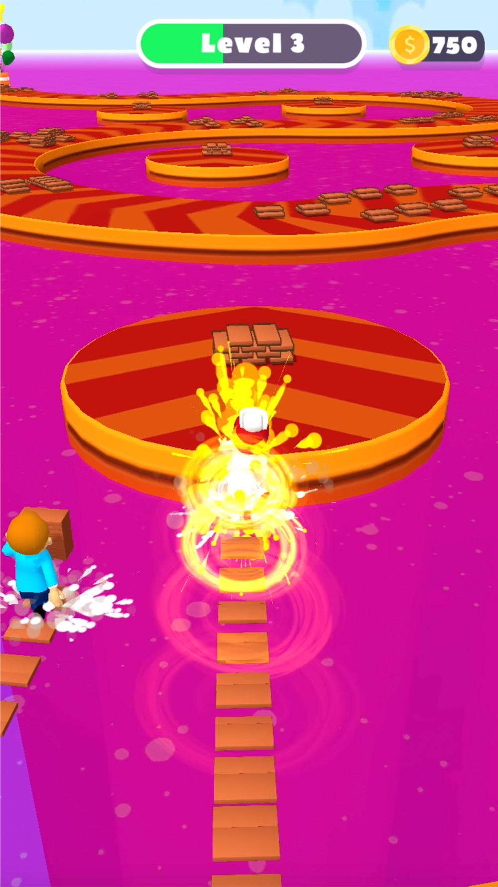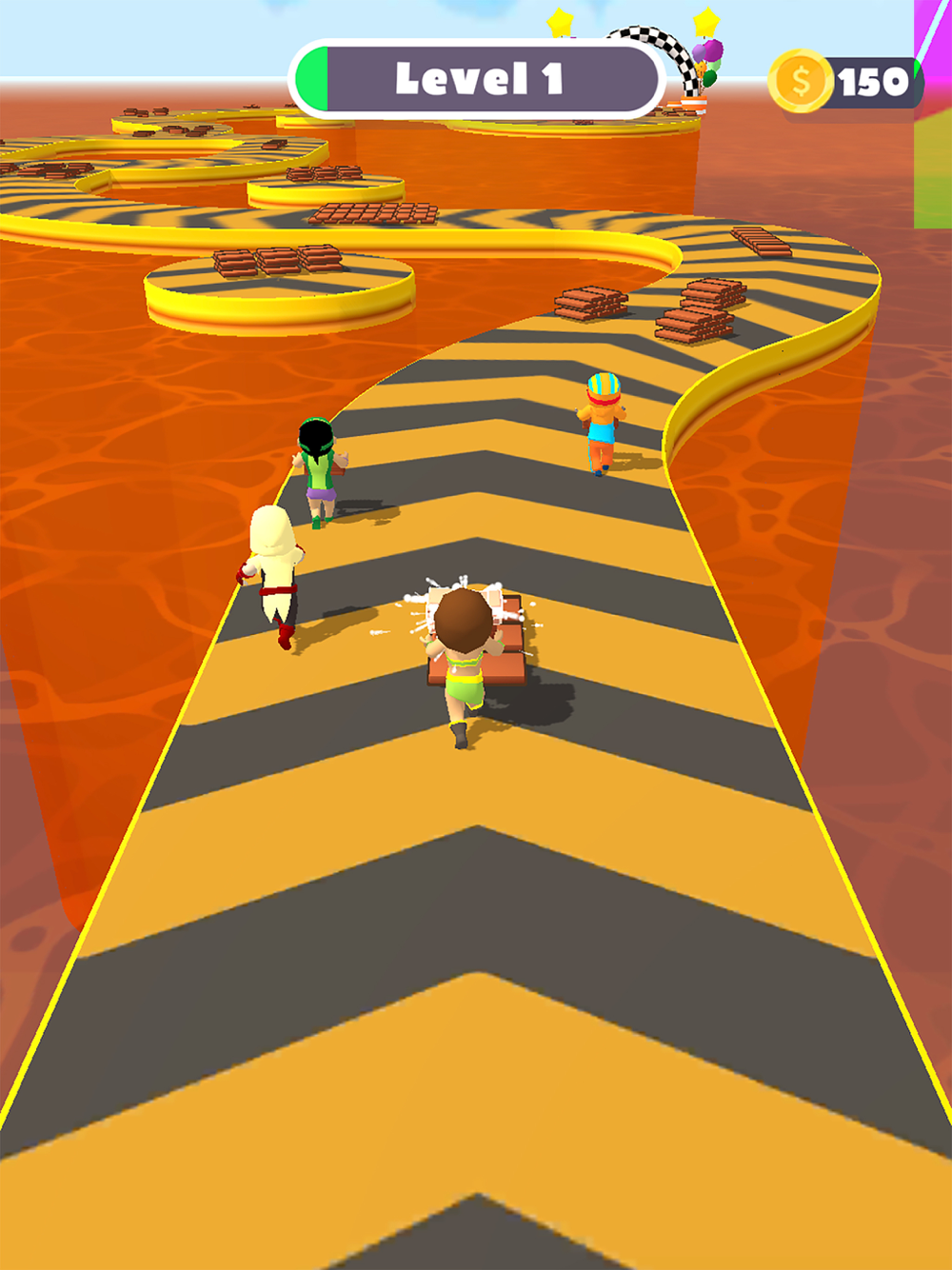 Race and collect the floorboards and stack up all the floorboards you can pick up. Then make a shortcut As far as possible to defeat your opponent.