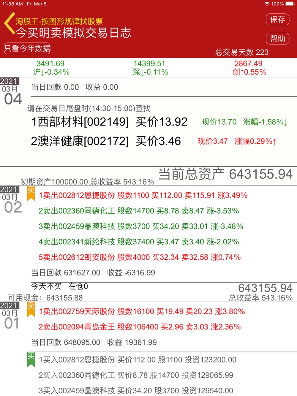 我们根据图形规律,再设定条件,找出最优秀的股票。大盘每天有涨有跌,即使大盘大跌,但3000支股票中,最少都有500支是涨的。大盘涨的时候,也有2000支以上是涨的。也就是说,每天我们有1/6到1/2的概率会抓到上涨的股票。