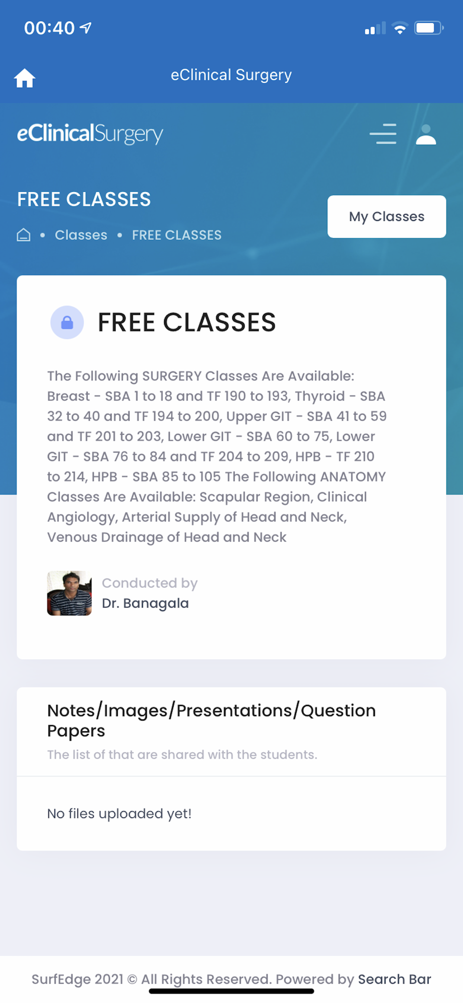 Mobile application to access eClinicalSurgery learning management system for ERPM.
