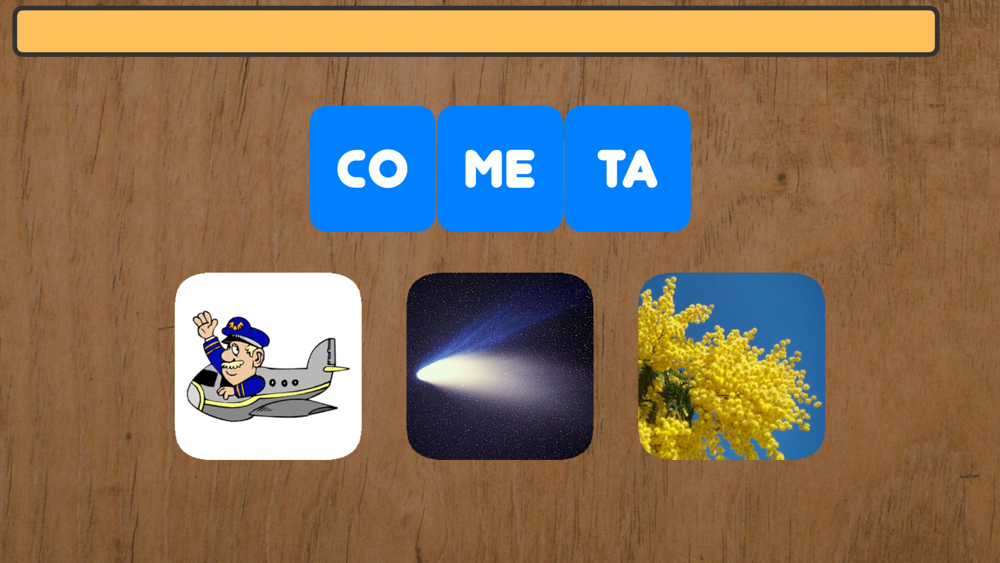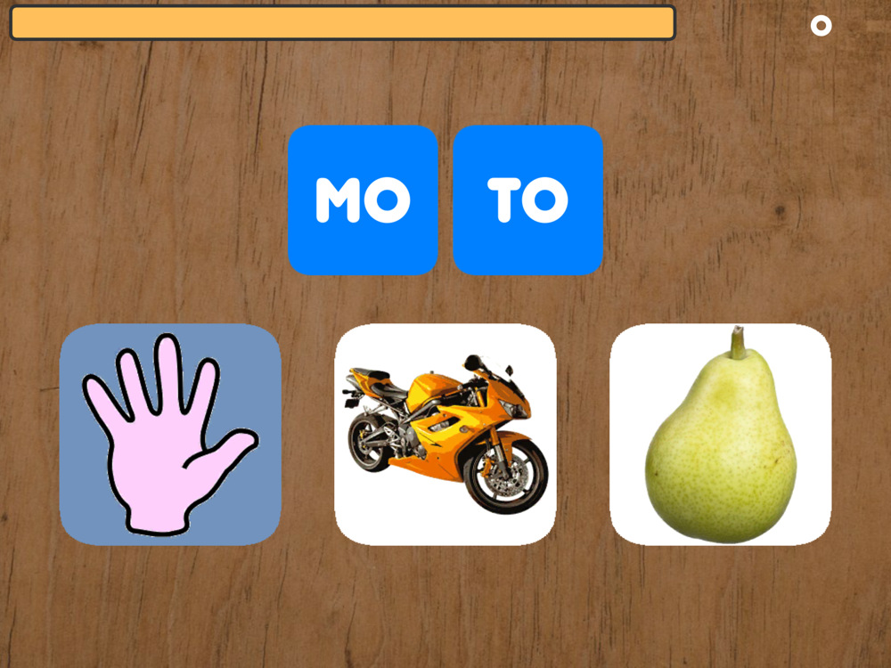 Lea la palabra dividida en sílabas y seleccione la imagen correspondiente. Cuando selecciona la imagen correcta, puede pasar a la siguiente palabra.
