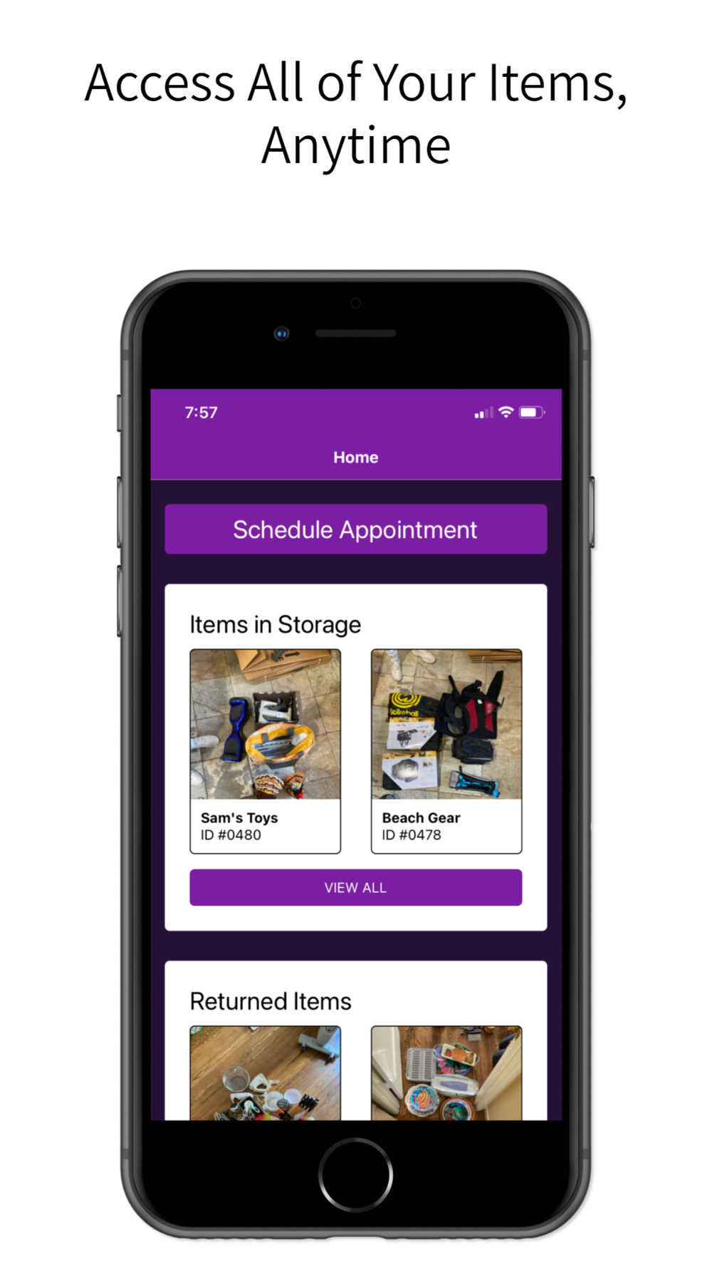 3. View and manage your items in storage. Your belongings will be secure, but you can easily see photos and descriptions of what you have stored. If you ever want any items back, simply schedule a delivery and the movers will return your items back to you.