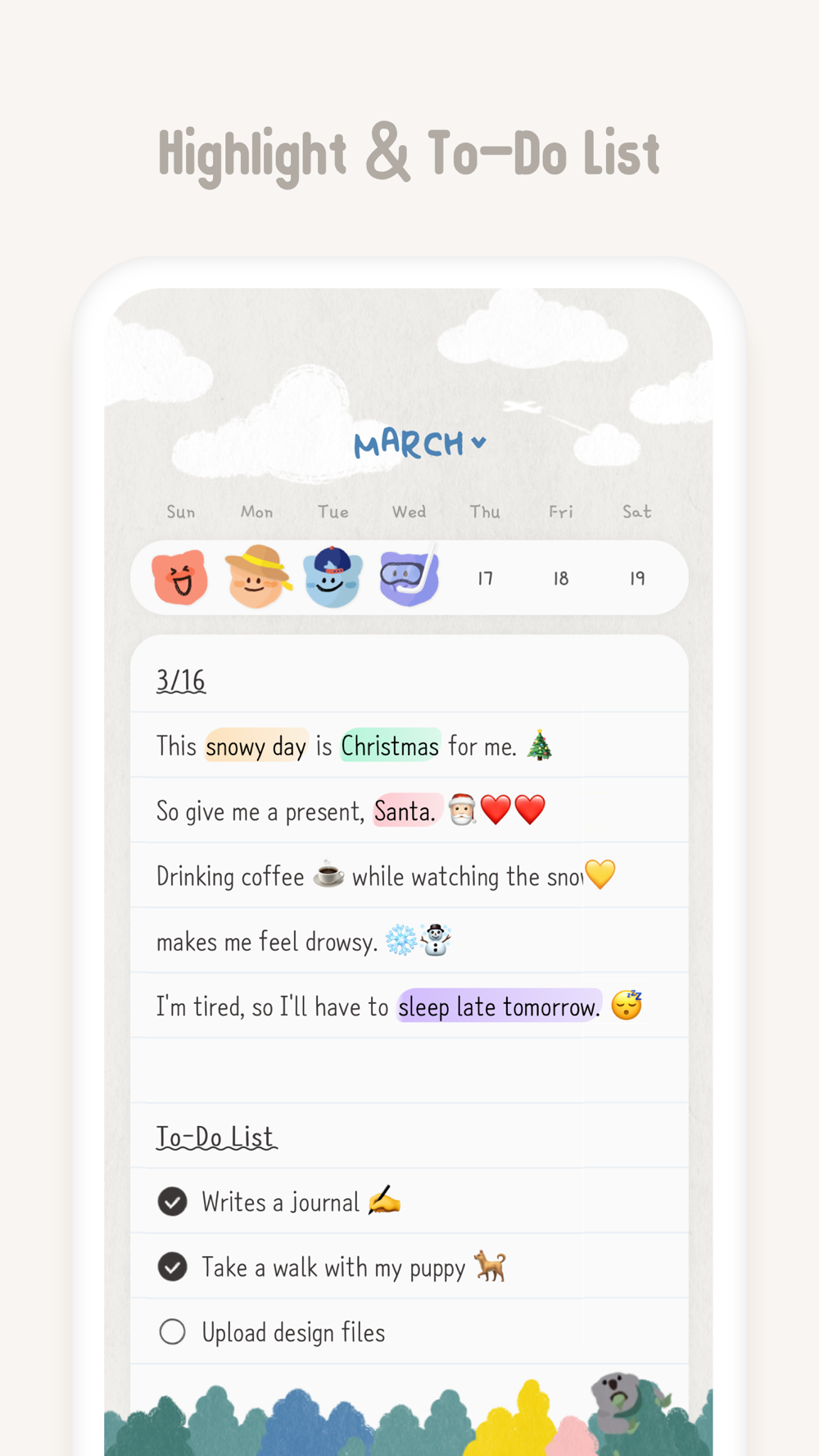 - Various emotion stickers by every date