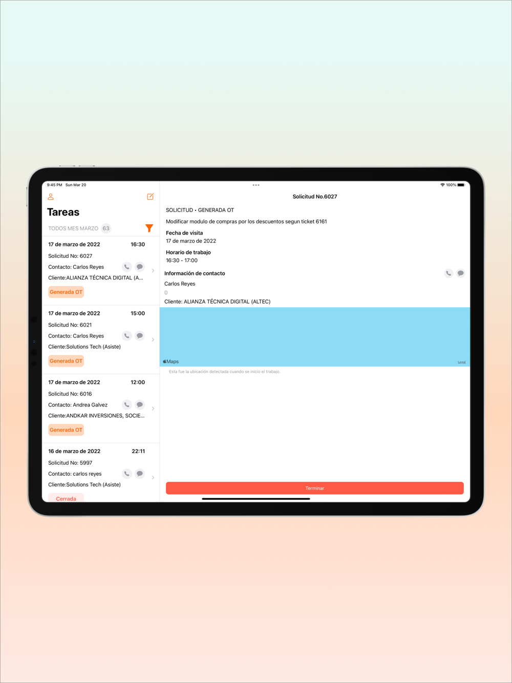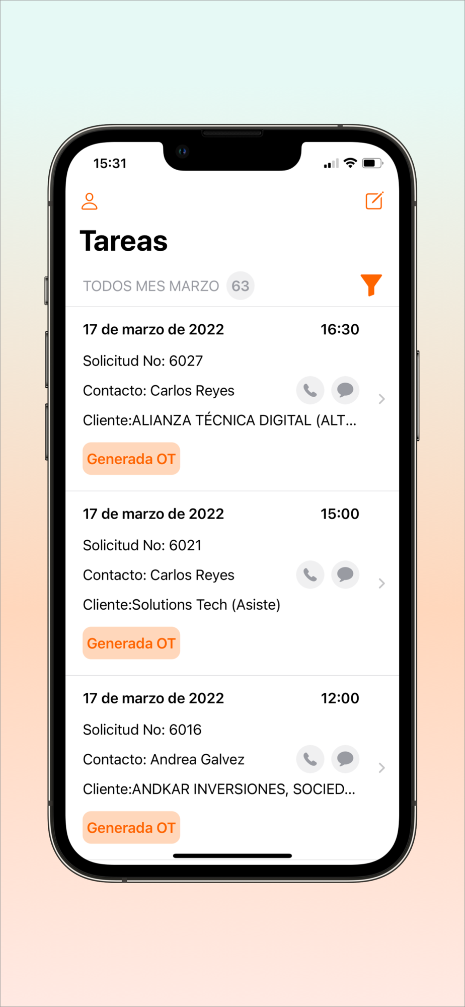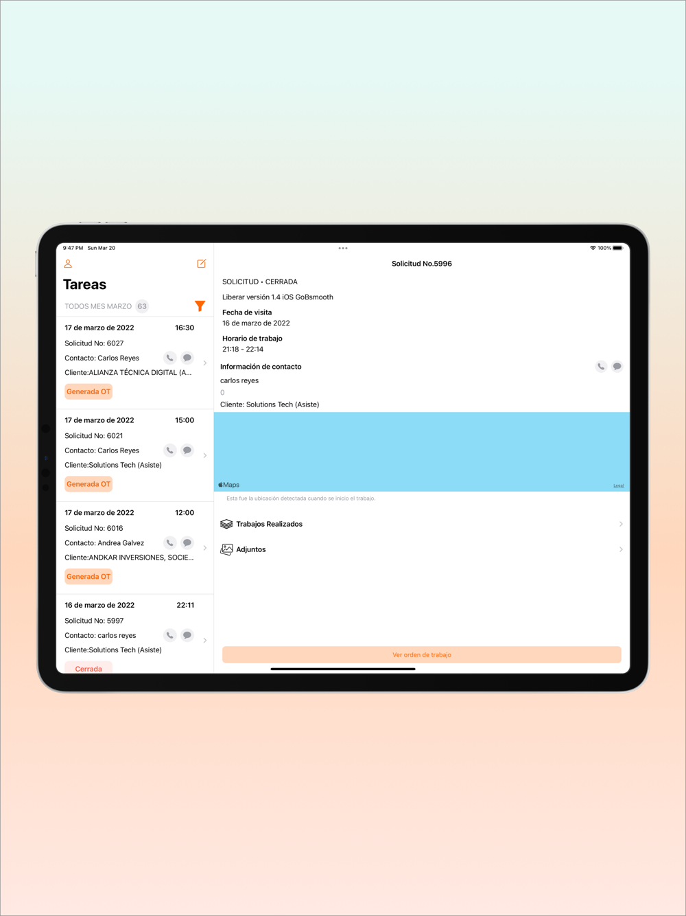 o Controles visuales: conoce en un solo vistazo el estado de las tareas y la relación con el cliente tanto de la puerta hacia dentro como de la puerta hacia fuera, todo en un mismo sitio.