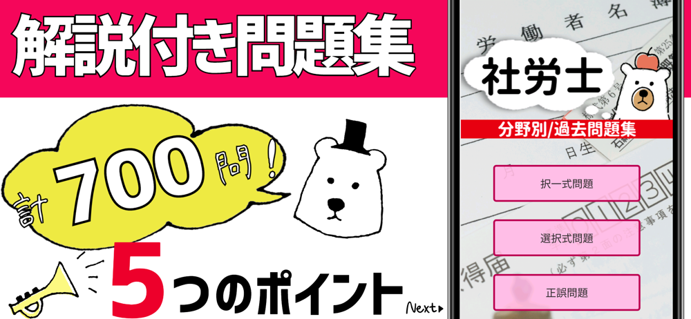 社会保険労務士の過去問対策、分野別問題アプリです!