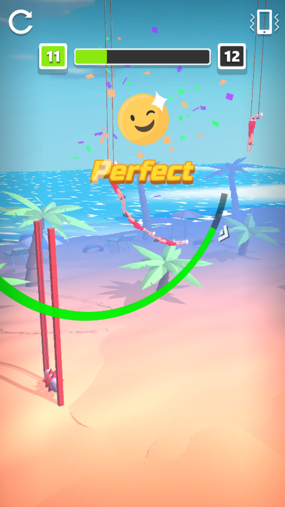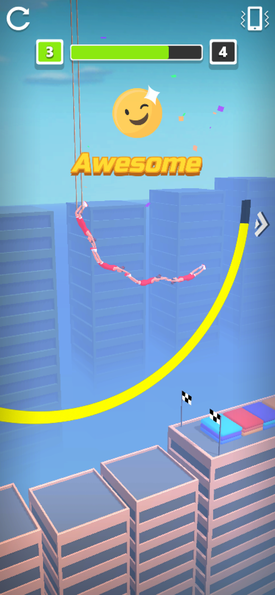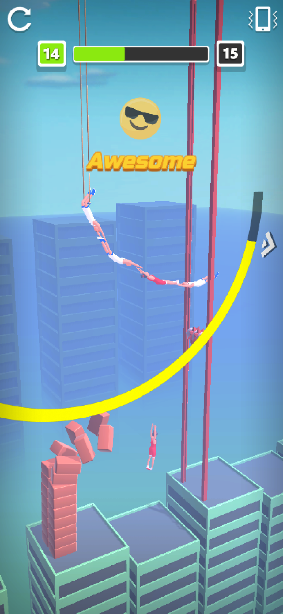 Proceed to the finish line by keeping the timing of your friends waiting for you on the ropes. You must be careful. Nobody wants to fall from a height.