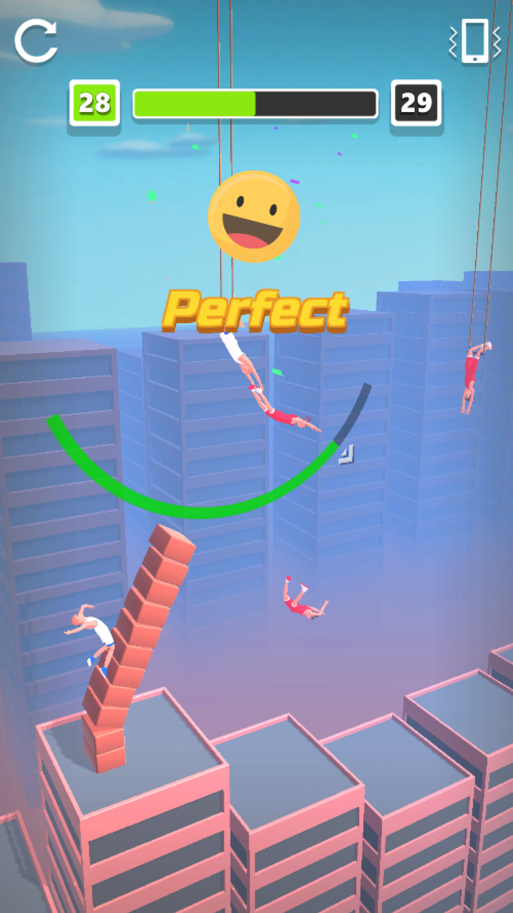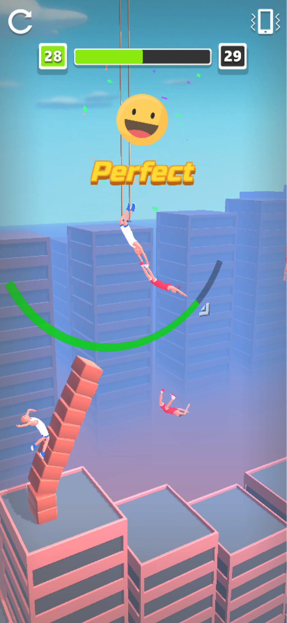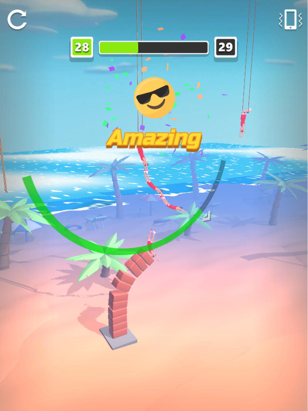 Proceed to the finish line by keeping the timing of your friends waiting for you on the ropes. You must be careful. Nobody wants to fall from a height.