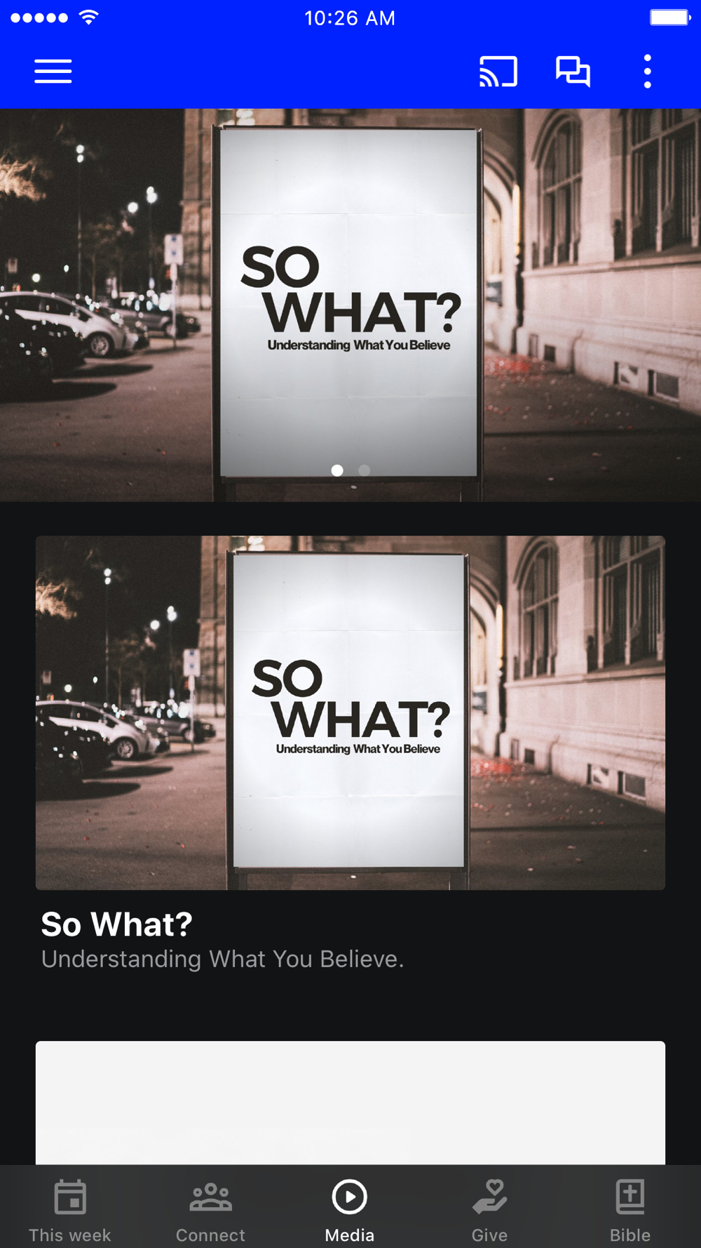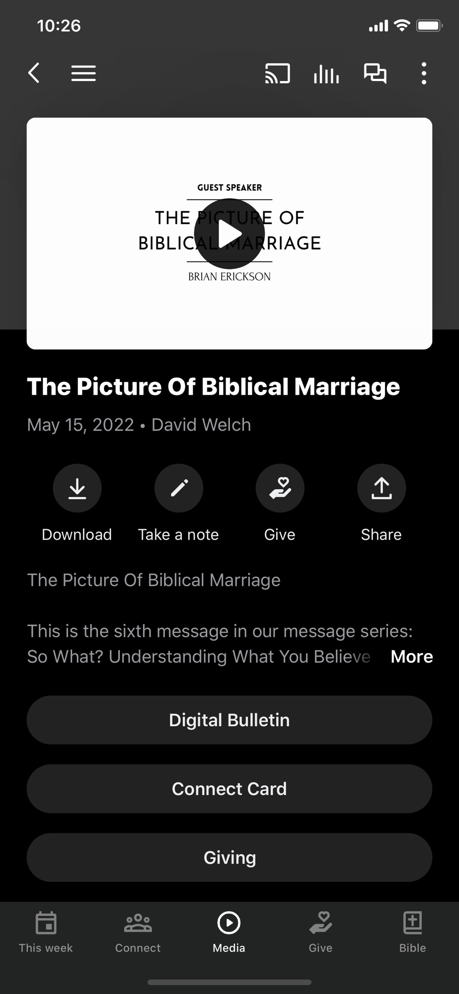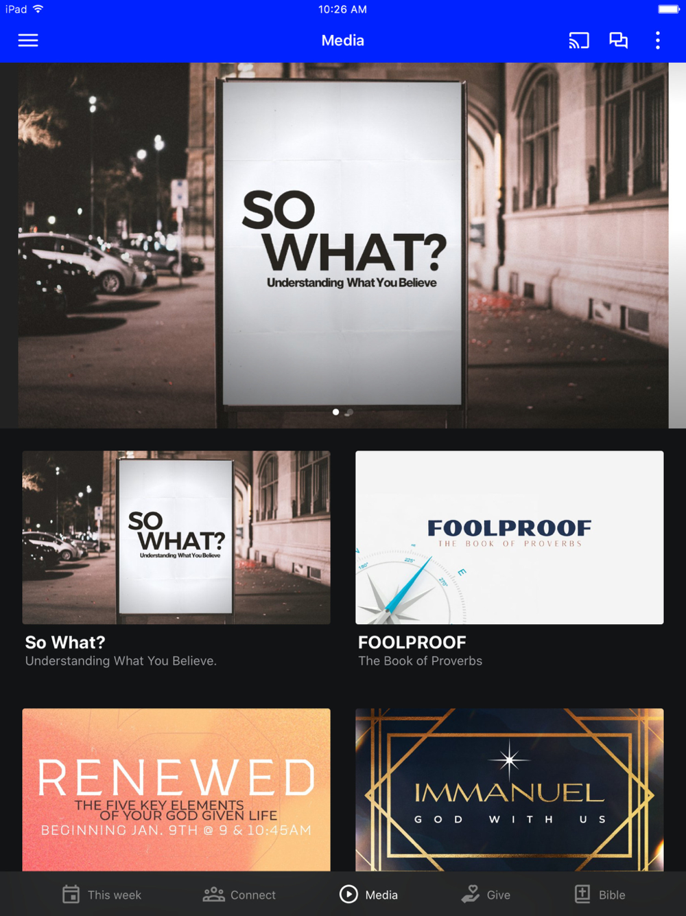 This app will help you stay connected with the day-to-day life of our church. With this app you can: watch or listen to past messages; stay up to date with push notifications; share your favorite messages via Twitter, Facebook, or email; and download messages for offline listening.