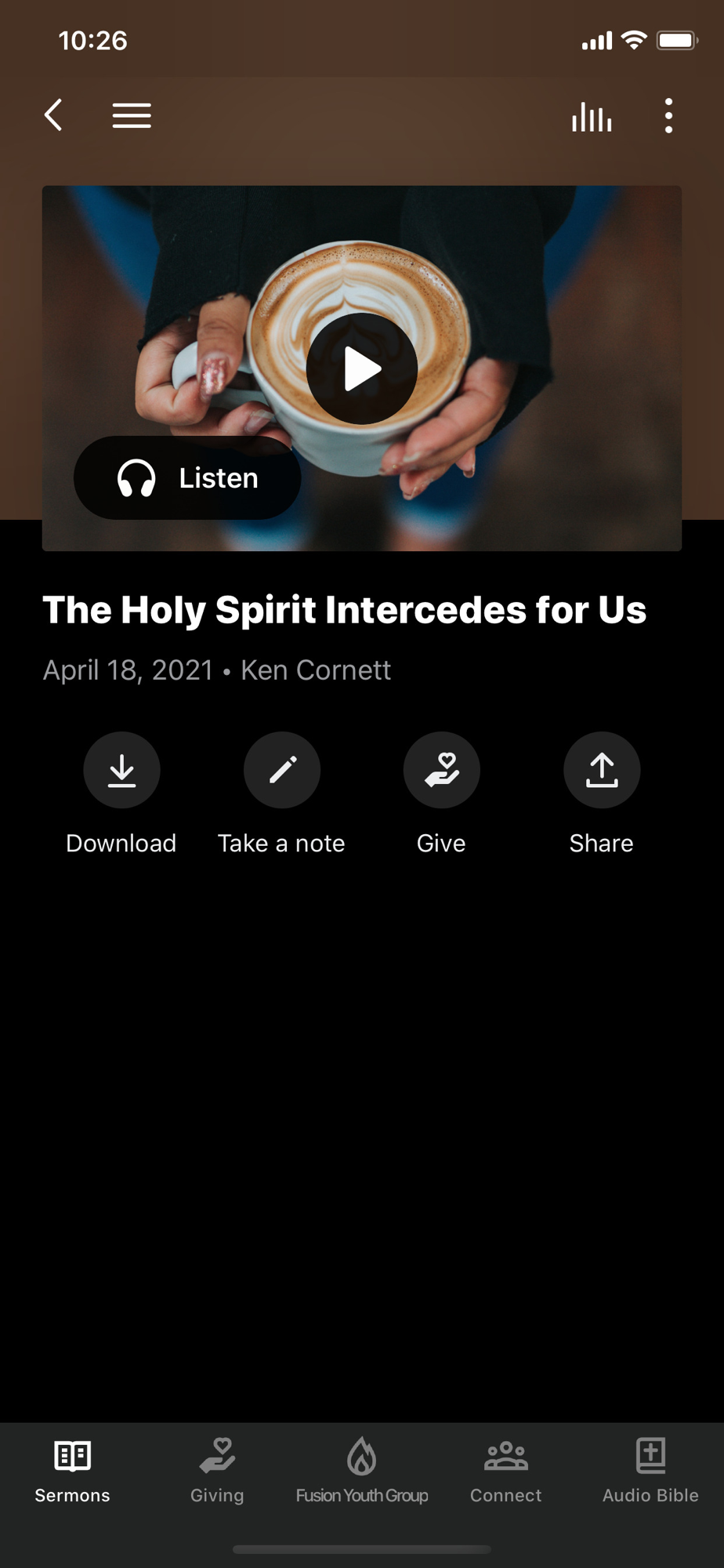 This app will help you stay connected with the day-to-day life of our church. With this app you can: watch or listen to past messages; stay up to date with push notifications; share your favorite messages via Twitter, Facebook, or email; and download messages for offline listening. Our motto is Come as you are. Dont leave as you came.