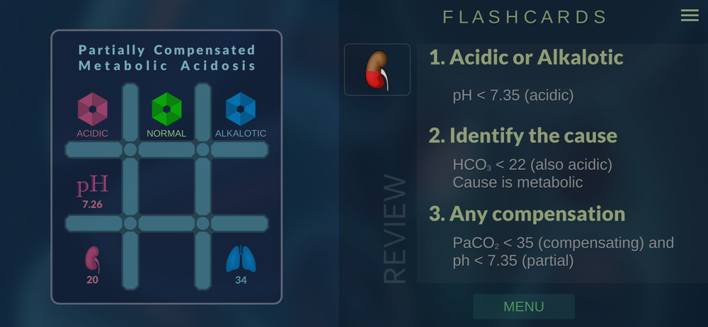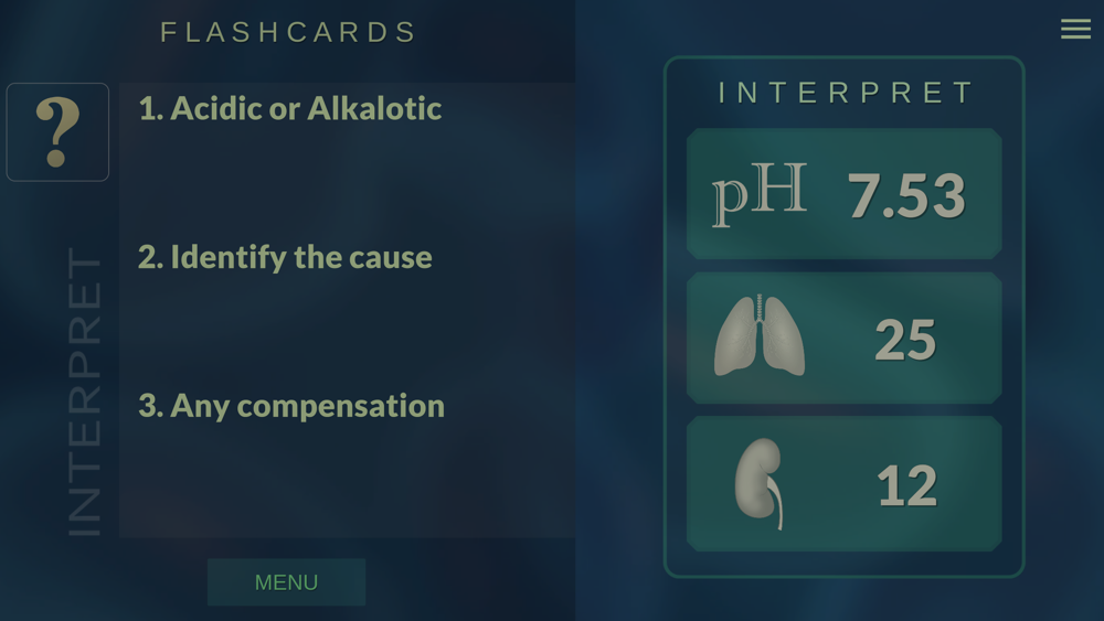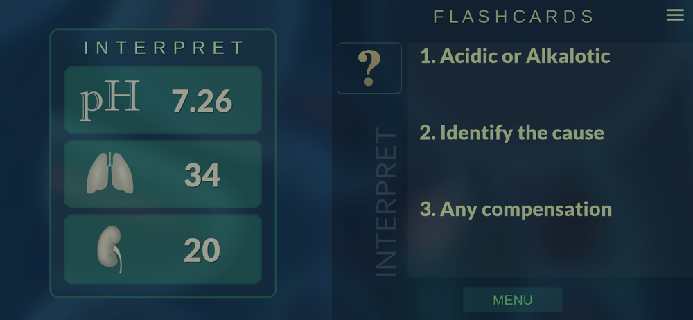 * Flash card is presented with a random set of values to interpret.