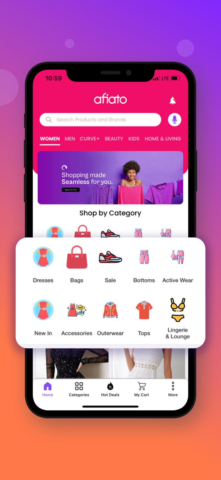Welcome to the Afiato shopping app. Enjoy a seamless shopping experience and save up to 90%!