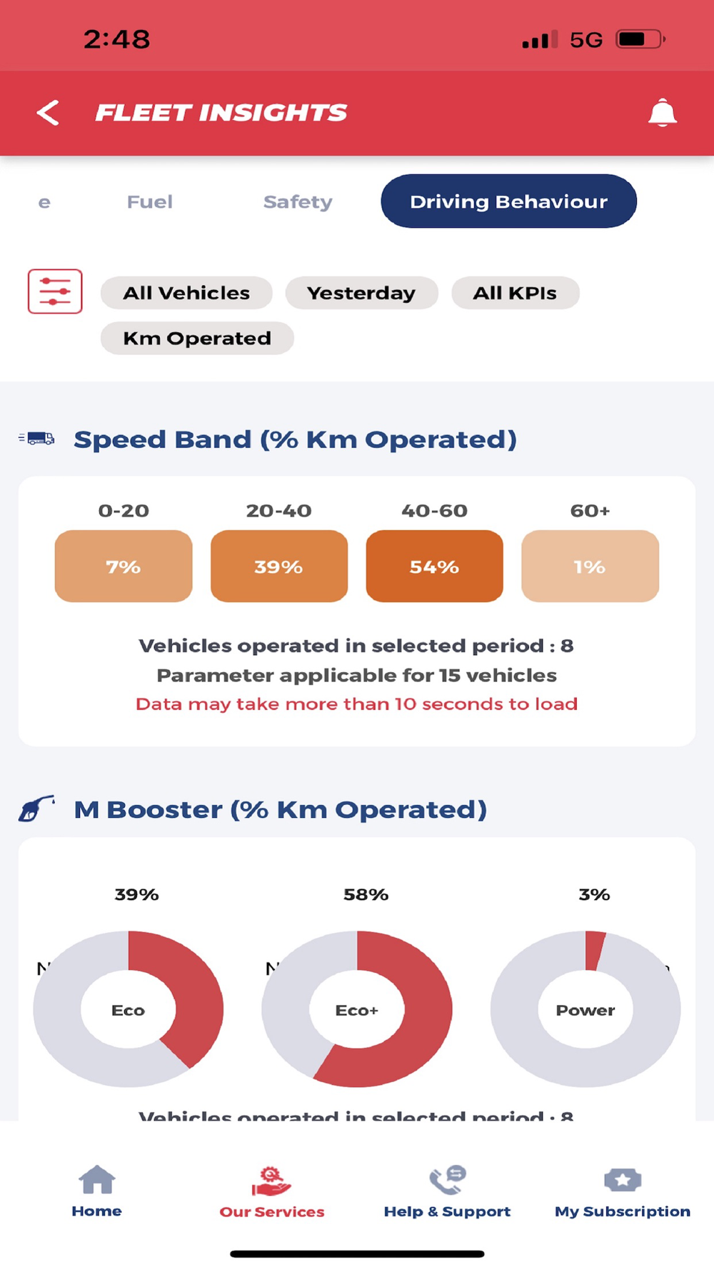 • Gain insights across 45 different parameters for vehicle utilization, fuel, safety and driving behavior