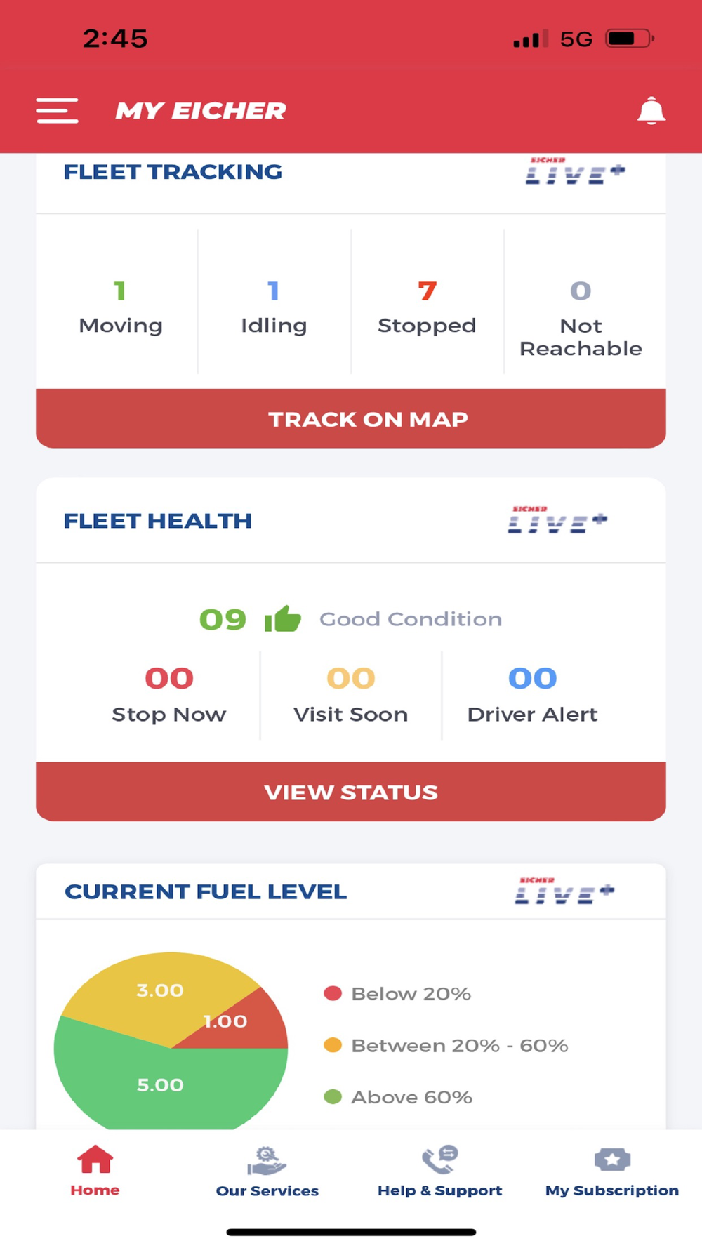 • Eicher Live+ - Includes Driving behavior alerts, Fuel alerts, Geo-fence alerts, Predictive Uptime alerts