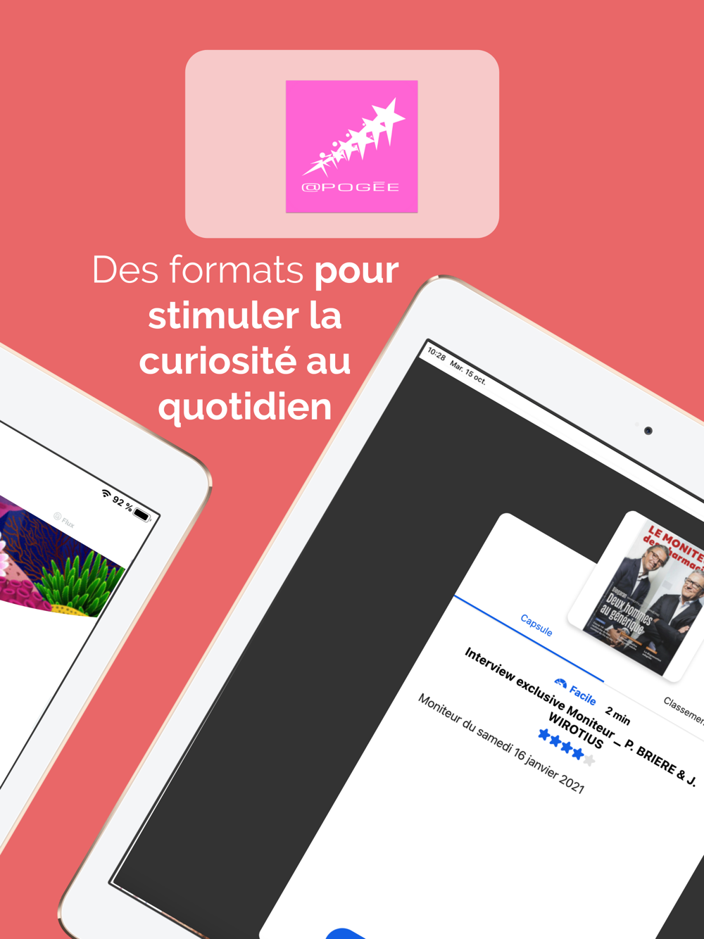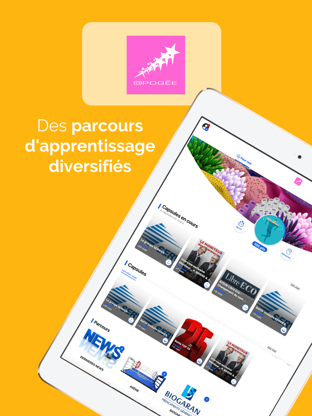Grâce à @poGée apprenez, testez-vous, défiez les autres et progressez de manière simple et ludique. L'application est utilisable avec ou sans connexion, à tout moment et sans limite.
