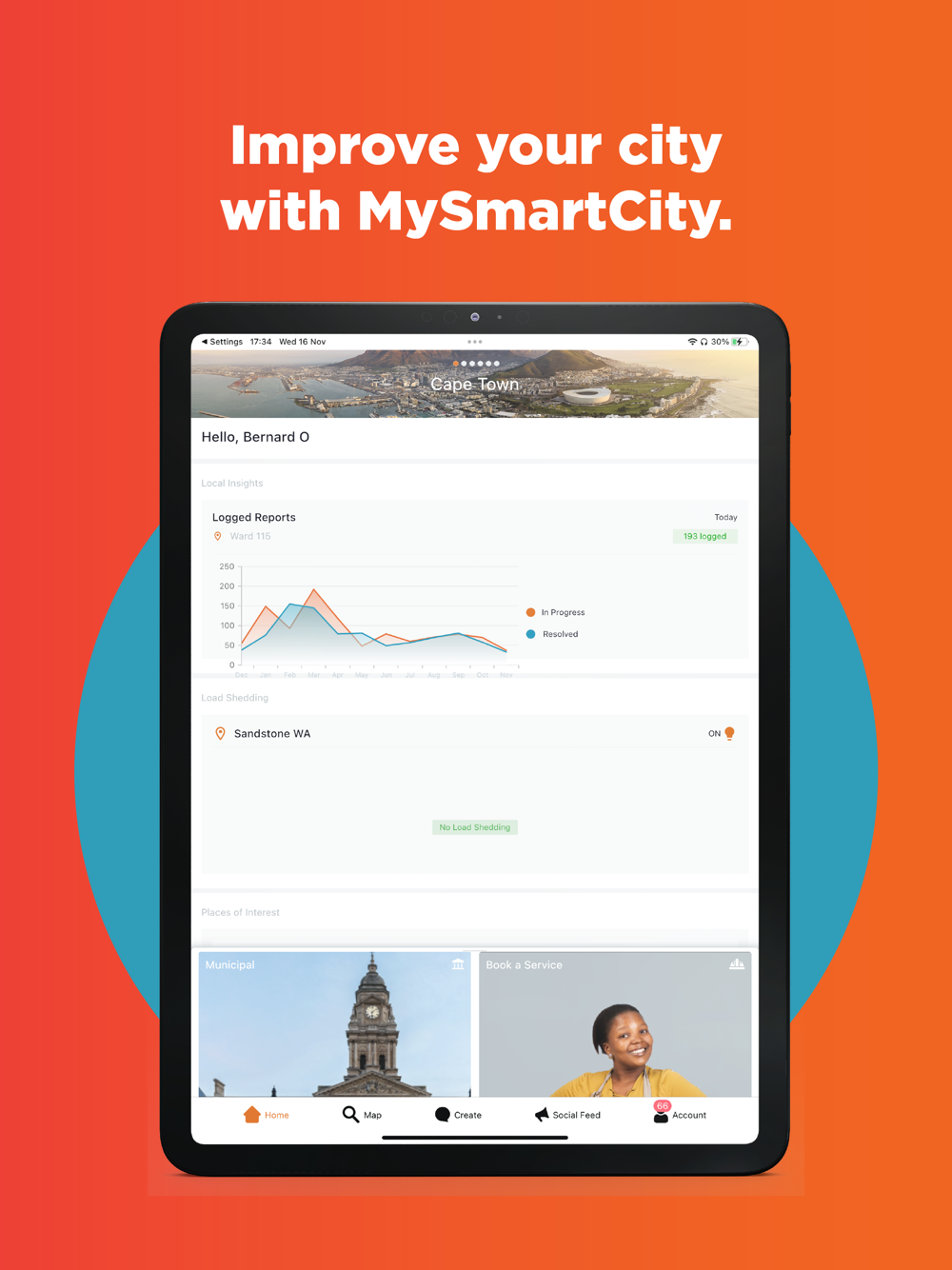 The app that places YOU, the citizen, at the centre of innovation in your city. Welcome to My Smart City!