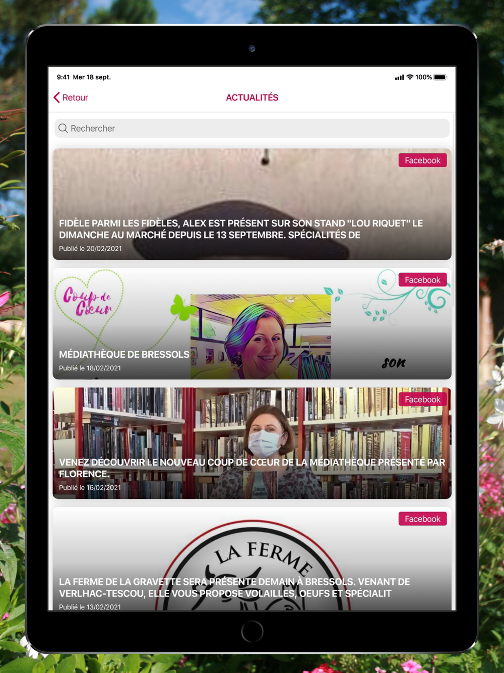 • Reprise automatique des actualités du site internet et de la page Facebook,