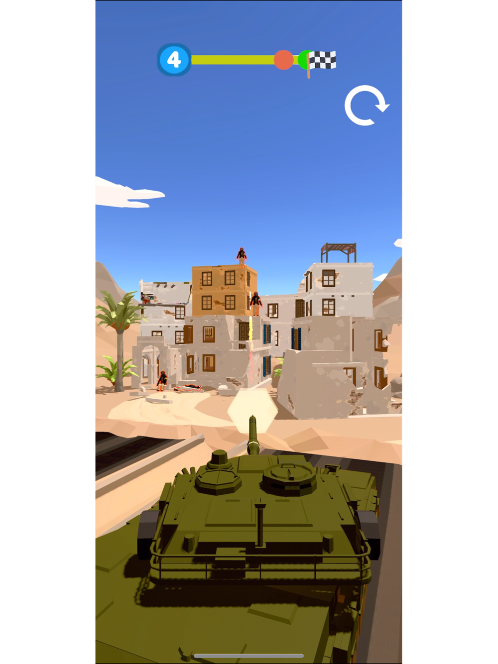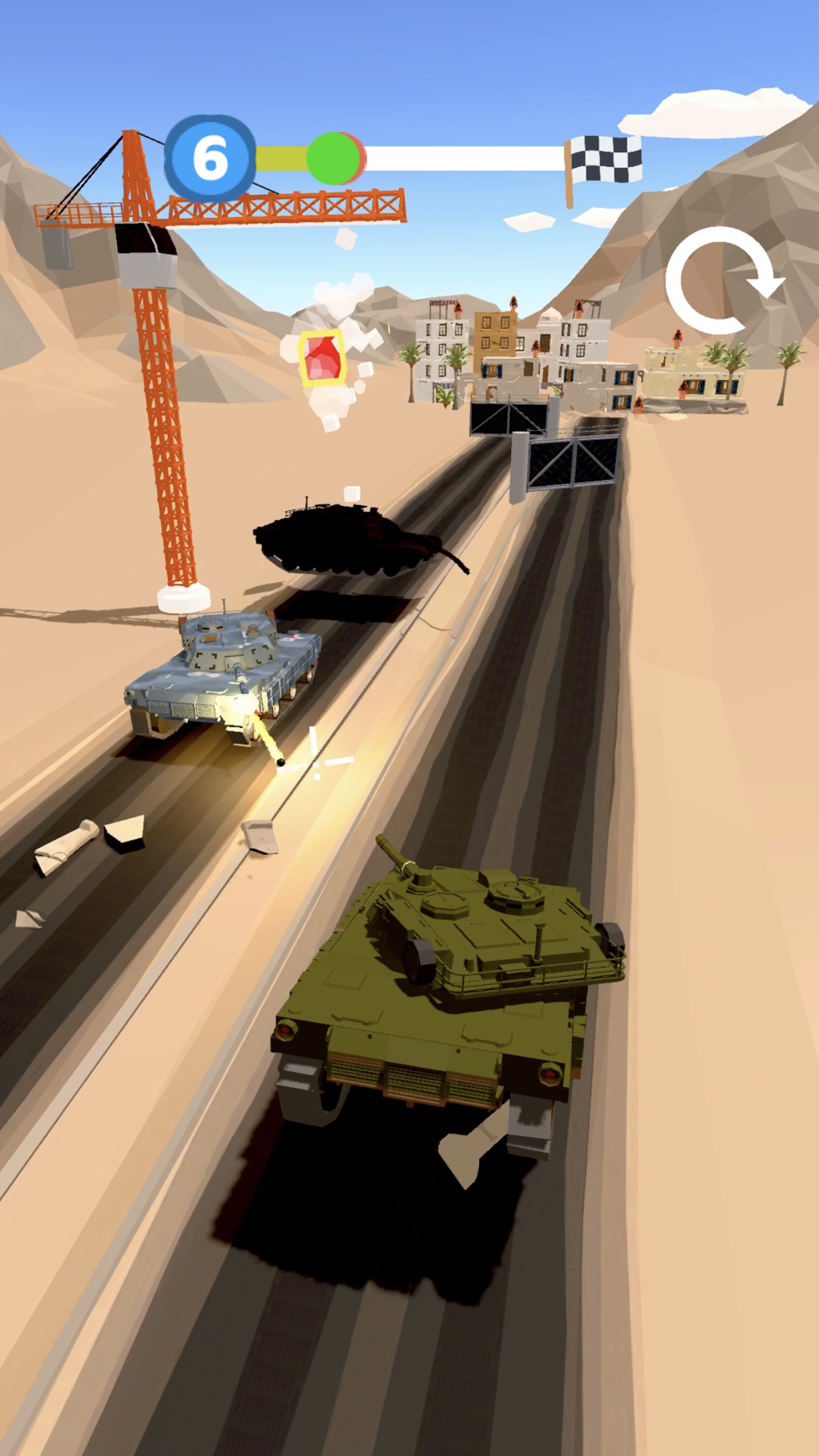 There are enemies who take people prisoner at the end of the road. reach the finish before the enemy tank and rocket them all!!