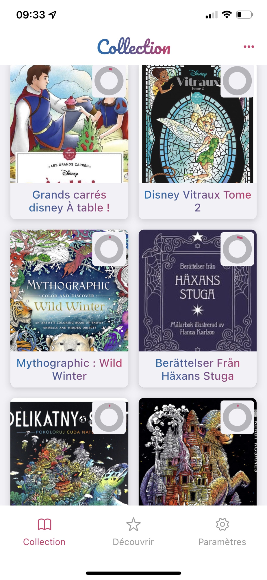 Add books to your collection, and keep track of completed colorings so you can see your progress at a glance.