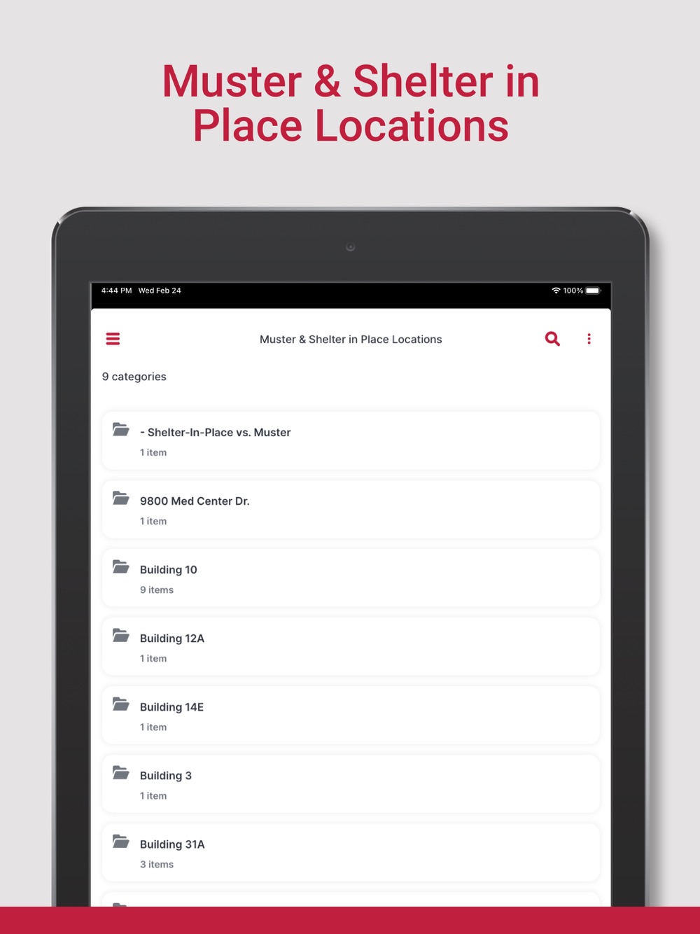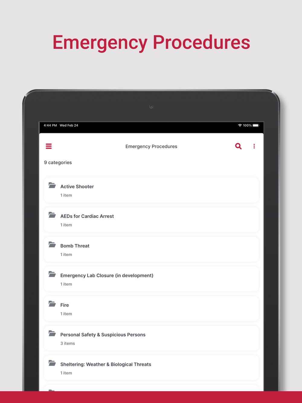 This app provides emergency planning and response information to include continuity of operations planning (COOP). The app serves as a tool for all staff and those with specific emergency response roles to ensure they always have the necessary tools and resources to effectively respond.